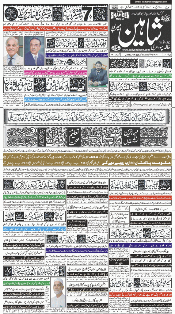 Daily Shaheen Mirpur – Latest news from Mirpur & Azad Kashmir | Mirpur News, Mirpur Newspaper