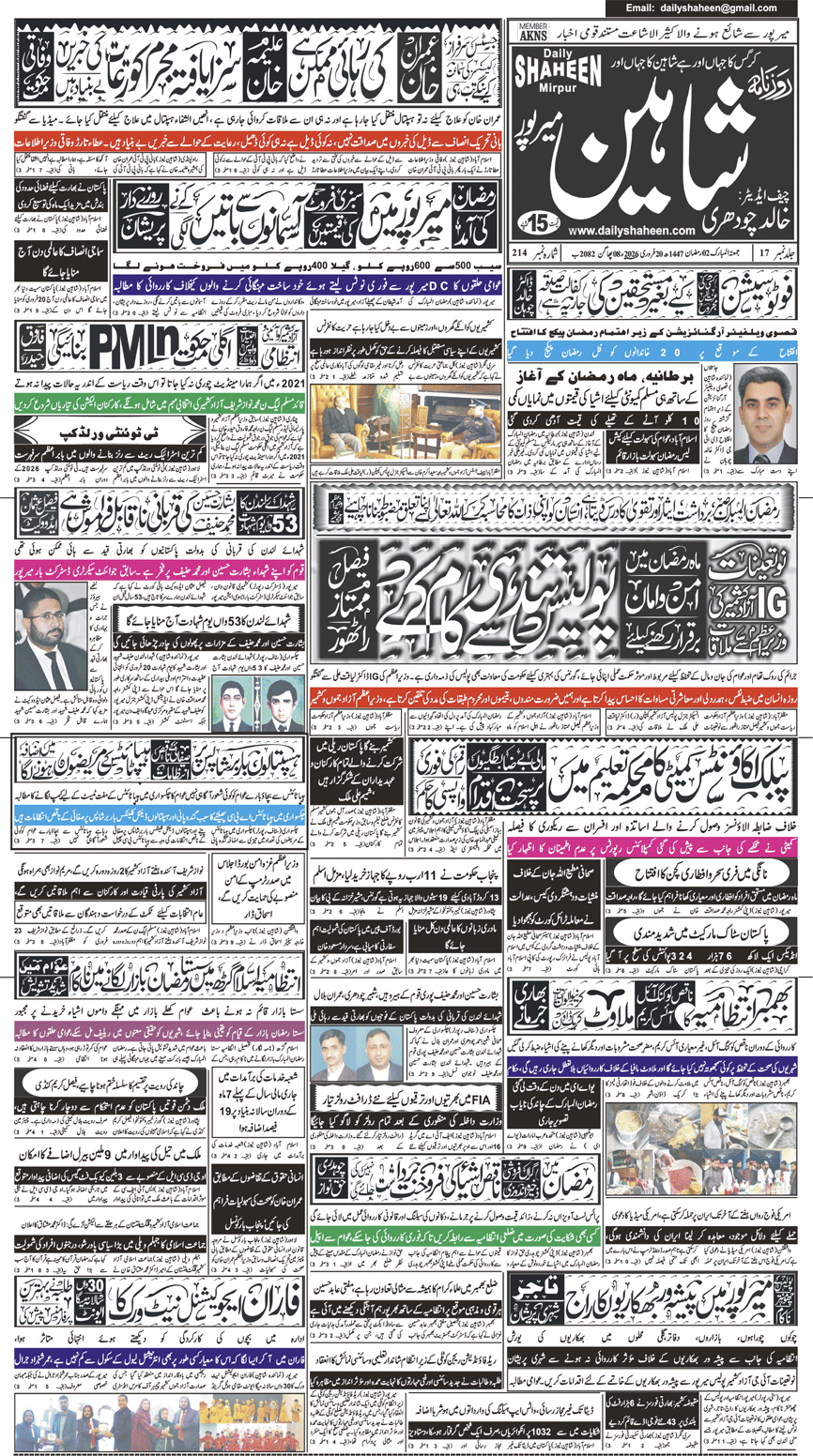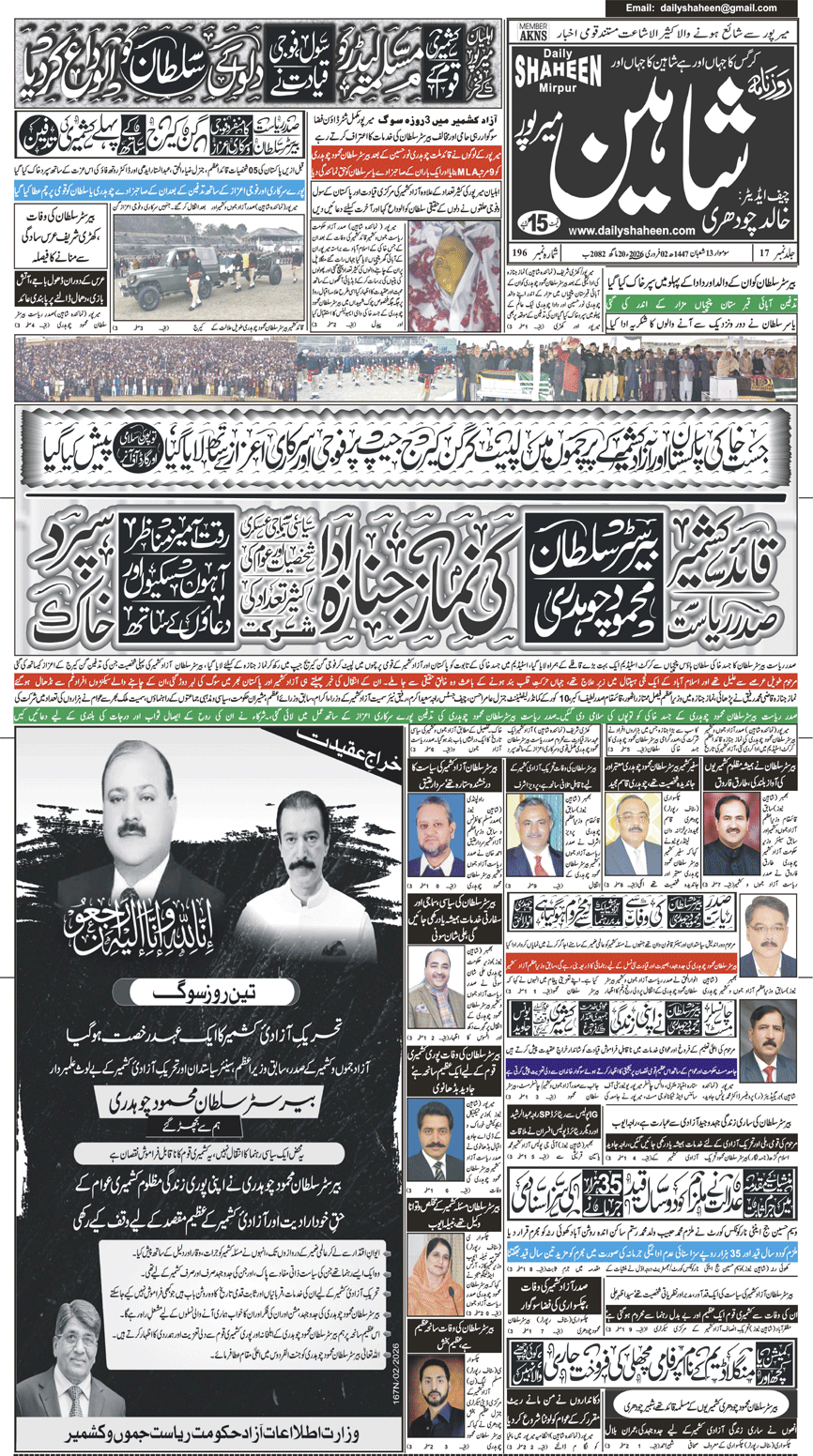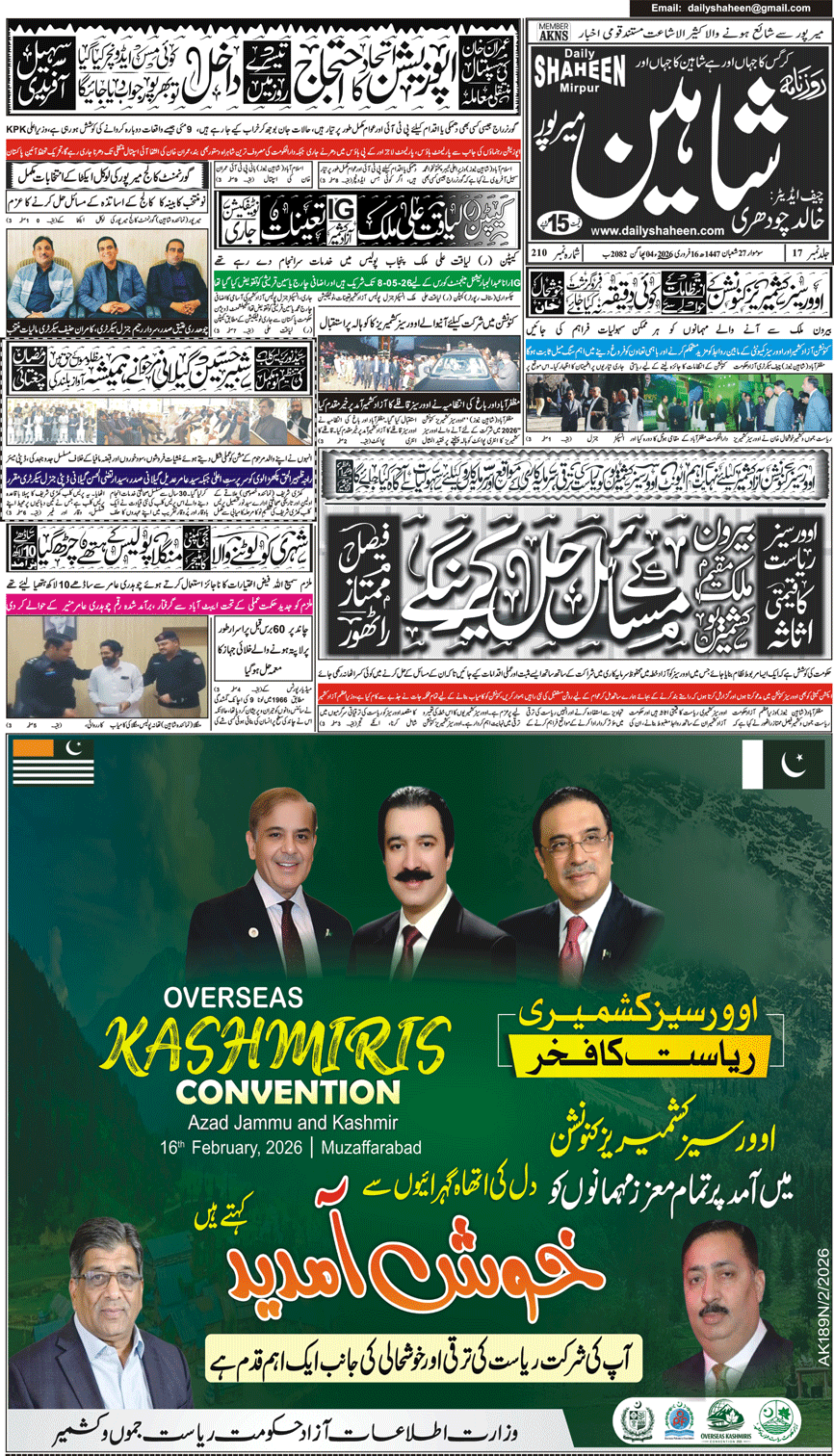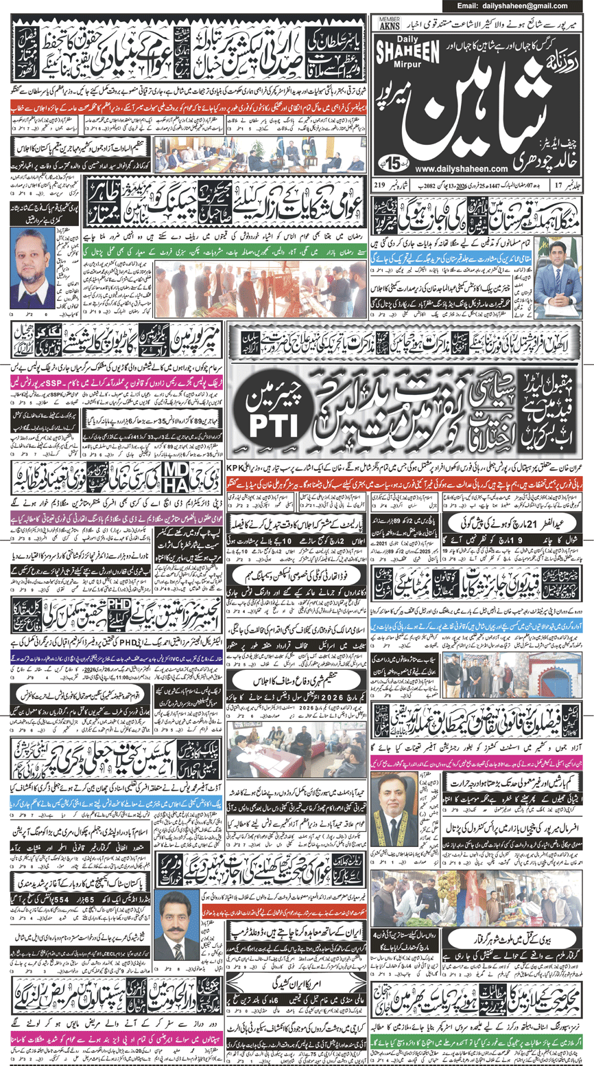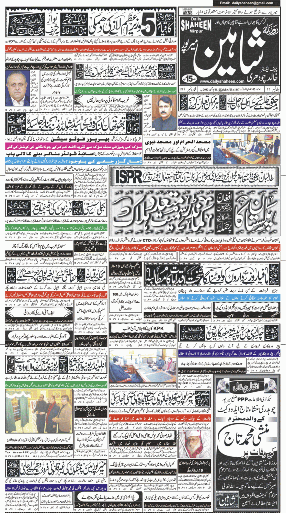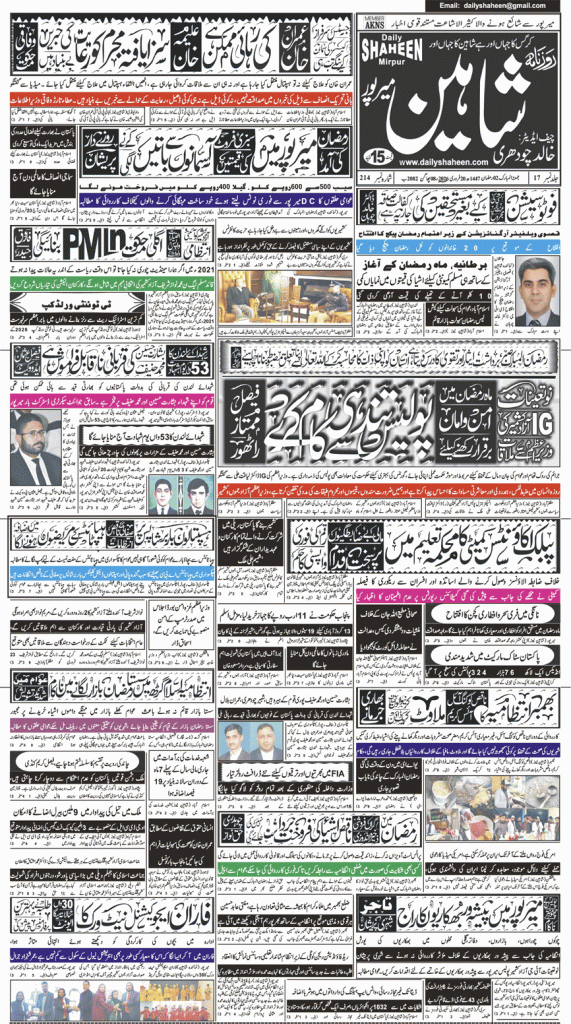 Daily Shaheen Mirpur – Latest news from Mirpur & Azad Kashmir | Mirpur News, Mirpur Newspaper