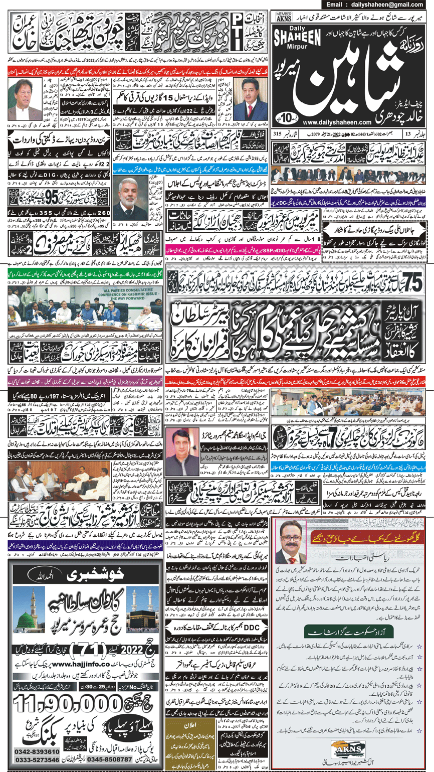 Daily Shaheen Mirpur – Latest news from Mirpur & Azad Kashmir | Mirpur News, Mirpur Newspaper