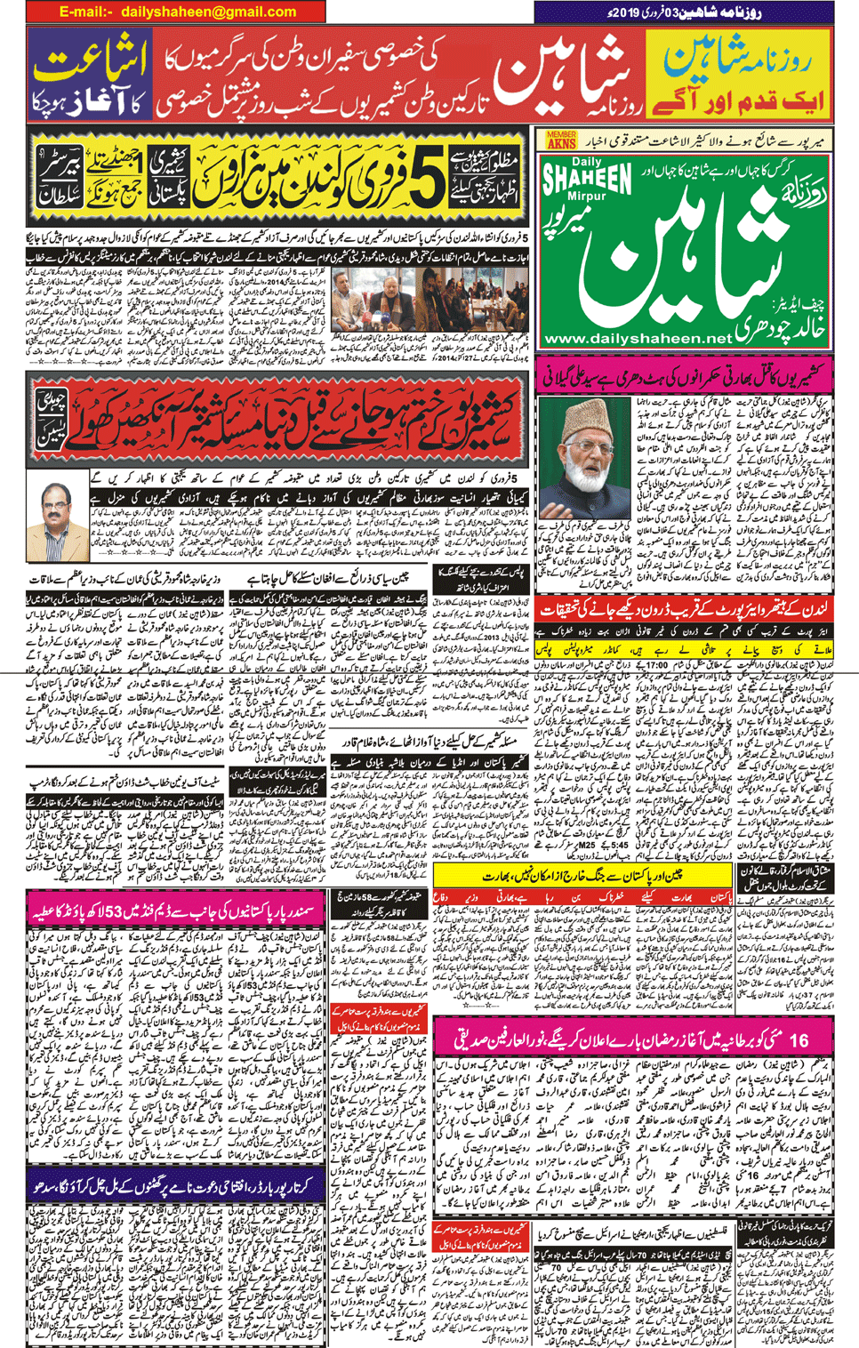 Daily Shaheen Mirpur – Latest news from Mirpur & Azad Kashmir | Mirpur News, Mirpur Newspaper