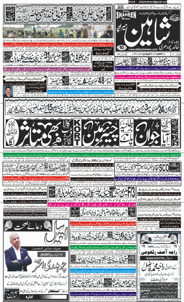 Daily Shaheen Mirpur – Latest news from Mirpur & Azad Kashmir | Mirpur News, Mirpur Newspaper