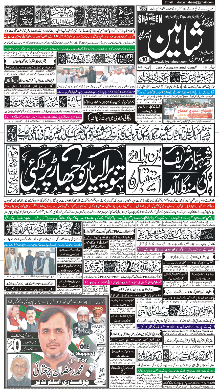 Daily Shaheen Mirpur – Latest news from Mirpur & Azad Kashmir | Mirpur News, Mirpur Newspaper