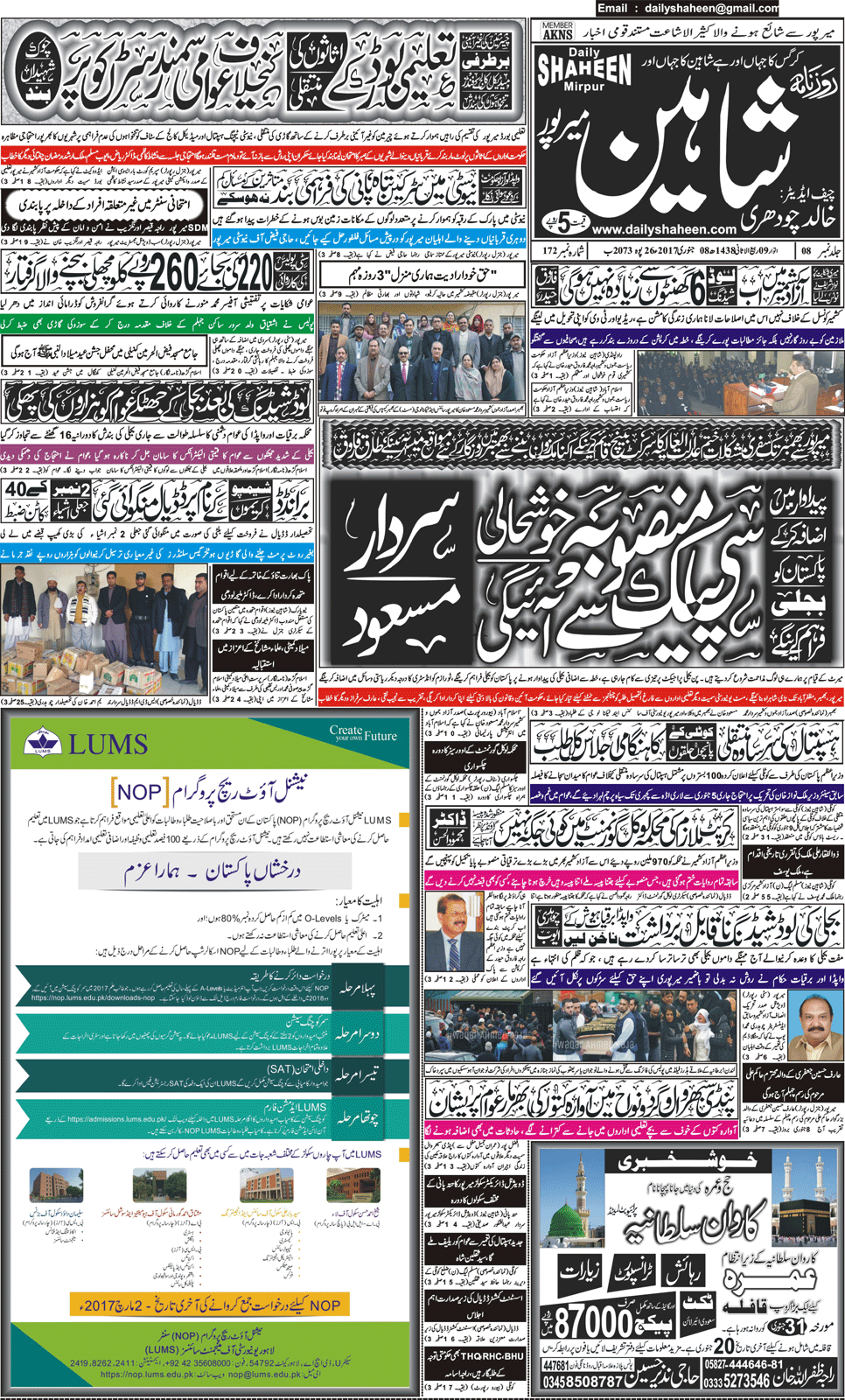 Daily Shaheen Mirpur – Latest news from Mirpur & Azad Kashmir | Mirpur News, Mirpur Newspaper