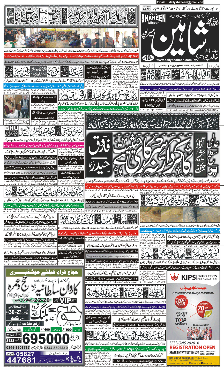 Daily Shaheen Mirpur – Latest news from Mirpur & Azad Kashmir | Mirpur News, Mirpur Newspaper