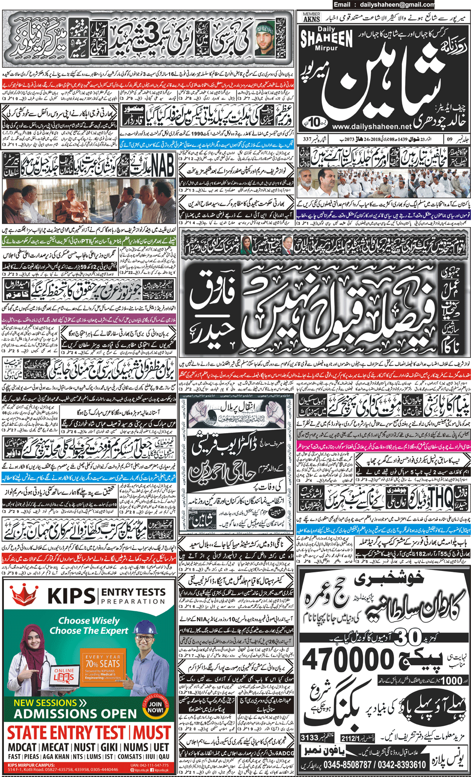 Daily Shaheen Mirpur – Latest news from Mirpur & Azad Kashmir | Mirpur News, Mirpur Newspaper