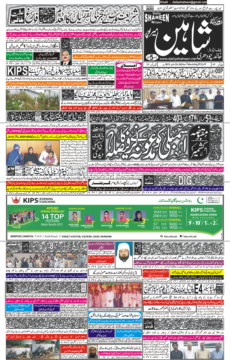 Daily Shaheen Mirpur – Latest news from Mirpur & Azad Kashmir | Mirpur News, Mirpur Newspaper
