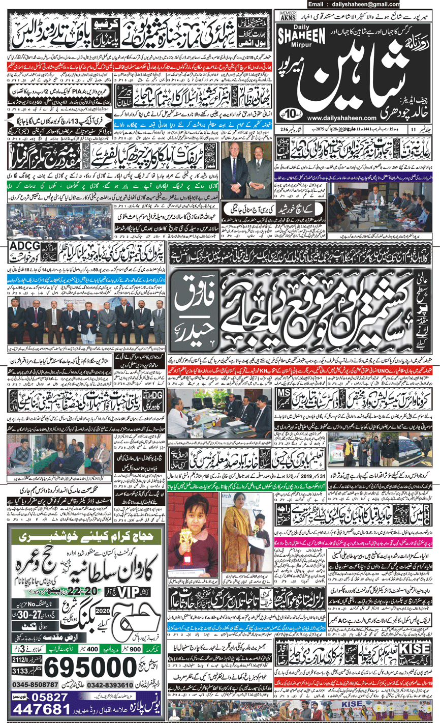 Daily Shaheen Mirpur – Latest news from Mirpur & Azad Kashmir | Mirpur News, Mirpur Newspaper