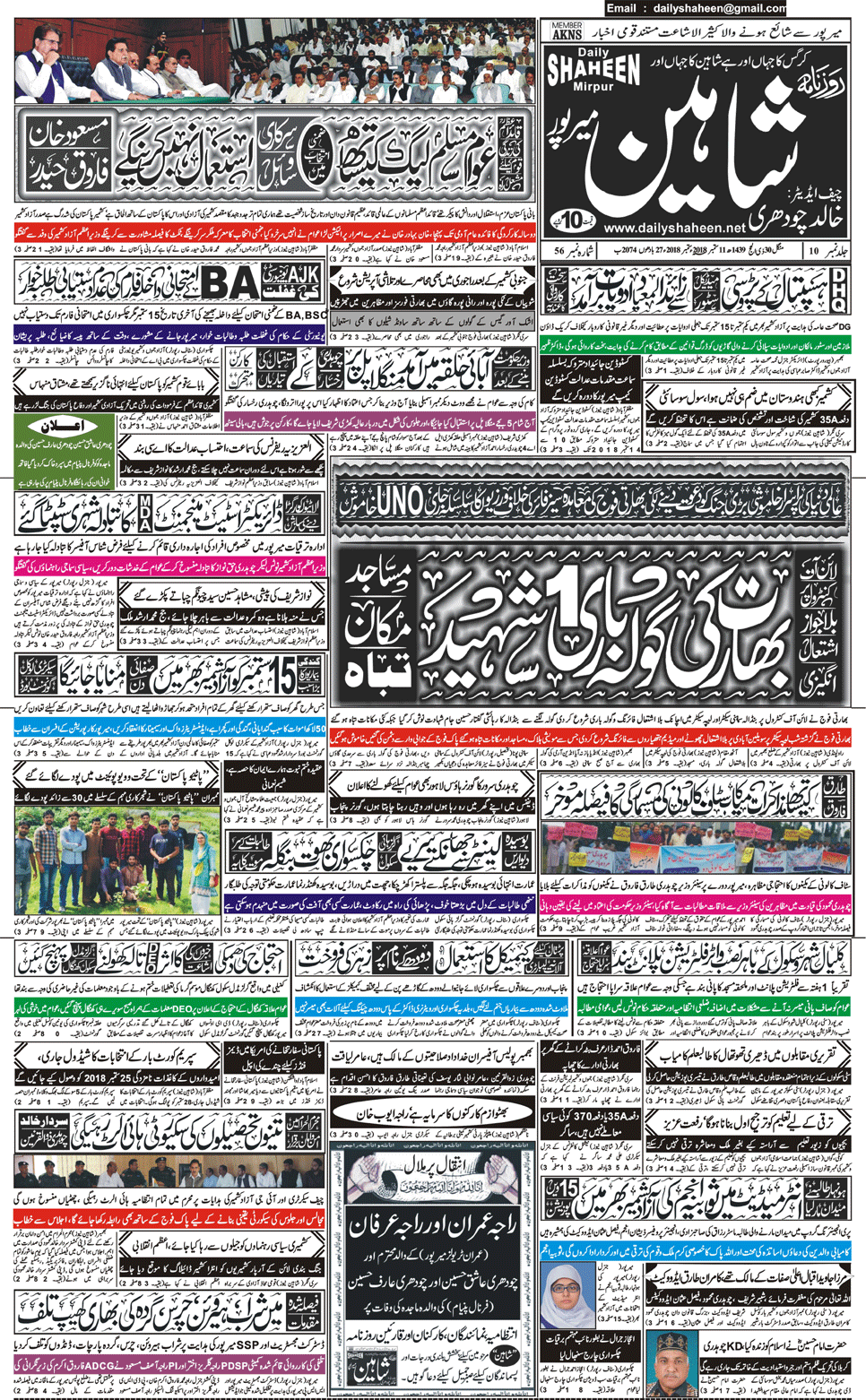 Daily Shaheen Mirpur – Latest news from Mirpur & Azad Kashmir | Mirpur News, Mirpur Newspaper