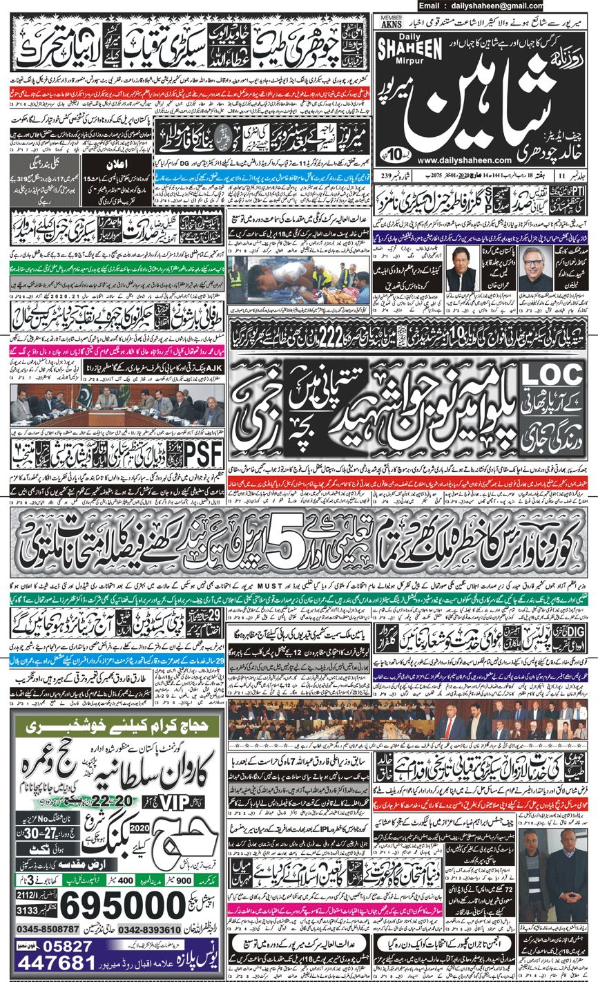 Daily Shaheen Mirpur – Latest news from Mirpur & Azad Kashmir | Mirpur News, Mirpur Newspaper