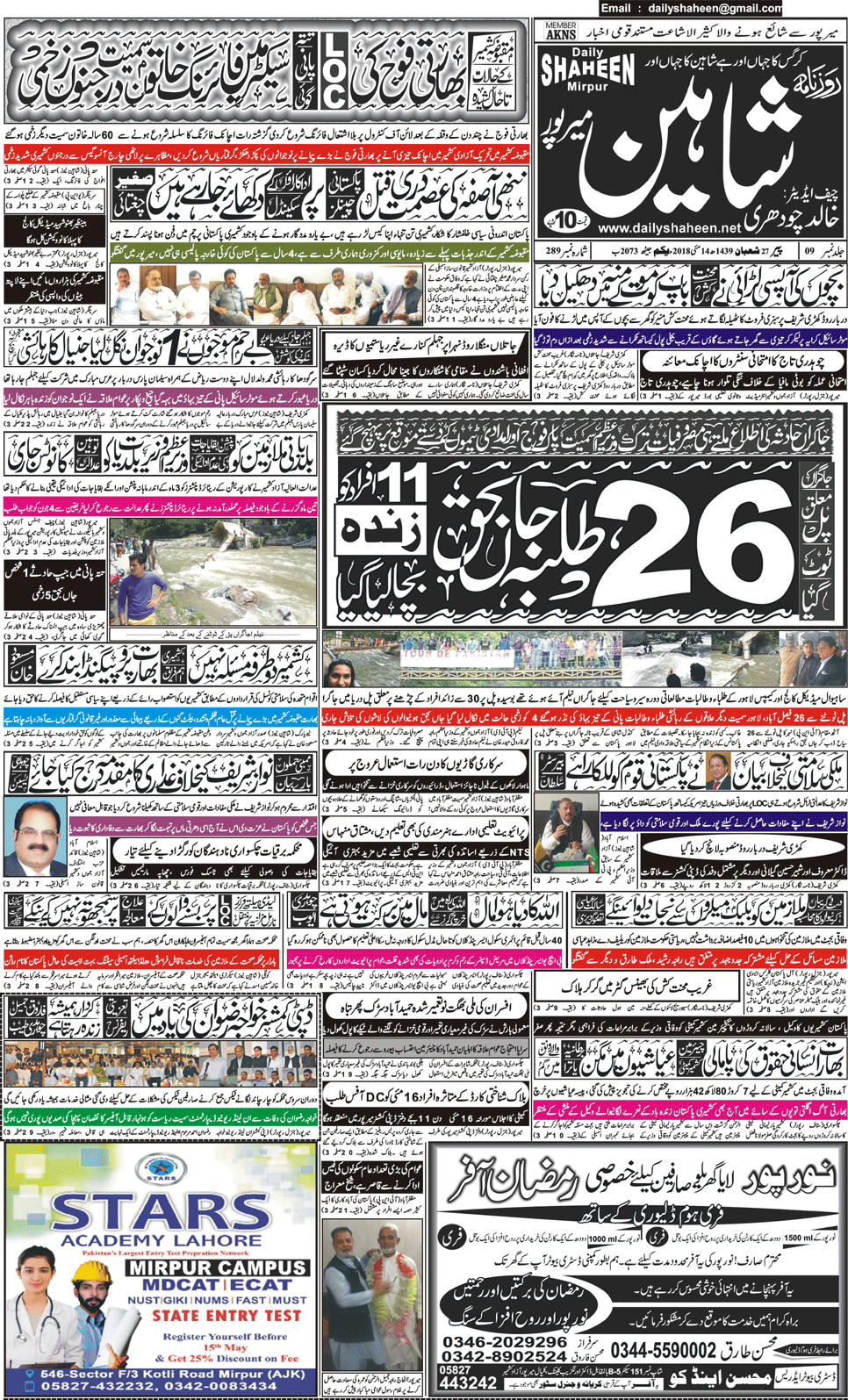 Daily Shaheen Mirpur – Latest news from Mirpur & Azad Kashmir | Mirpur News, Mirpur Newspaper