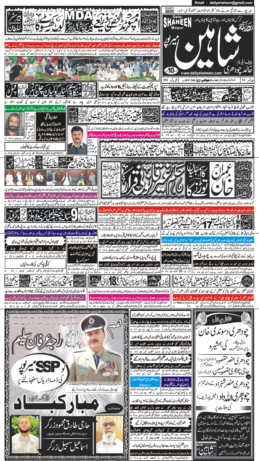 Daily Shaheen Mirpur – Latest news from Mirpur & Azad Kashmir | Mirpur News, Mirpur Newspaper