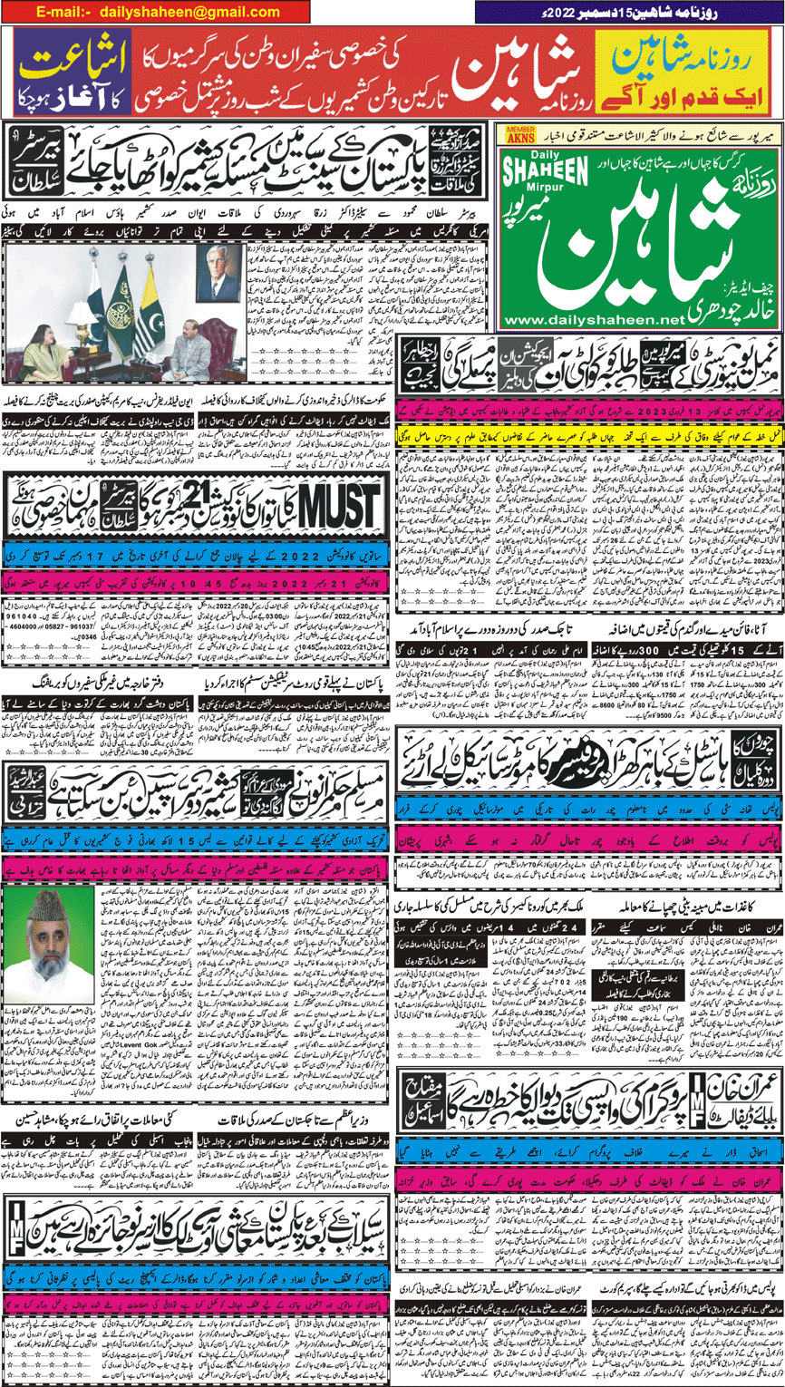 Daily Shaheen Mirpur – Latest news from Mirpur & Azad Kashmir | Mirpur News, Mirpur Newspaper