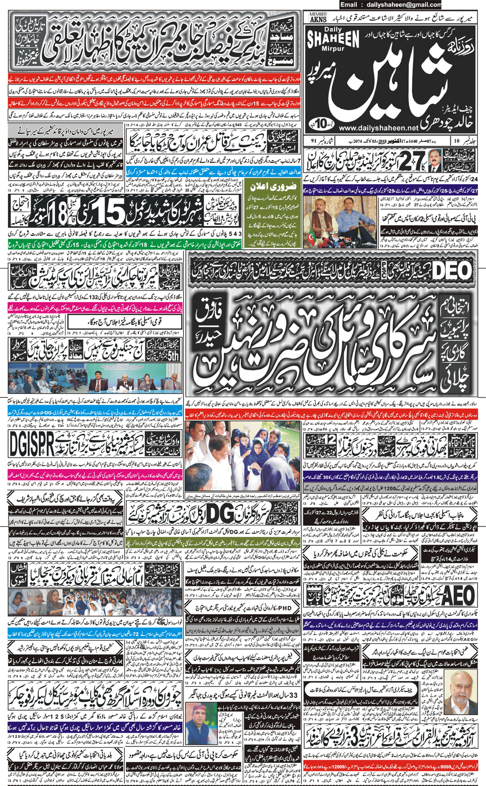 Daily Shaheen Mirpur – Latest news from Mirpur & Azad Kashmir | Mirpur News, Mirpur Newspaper