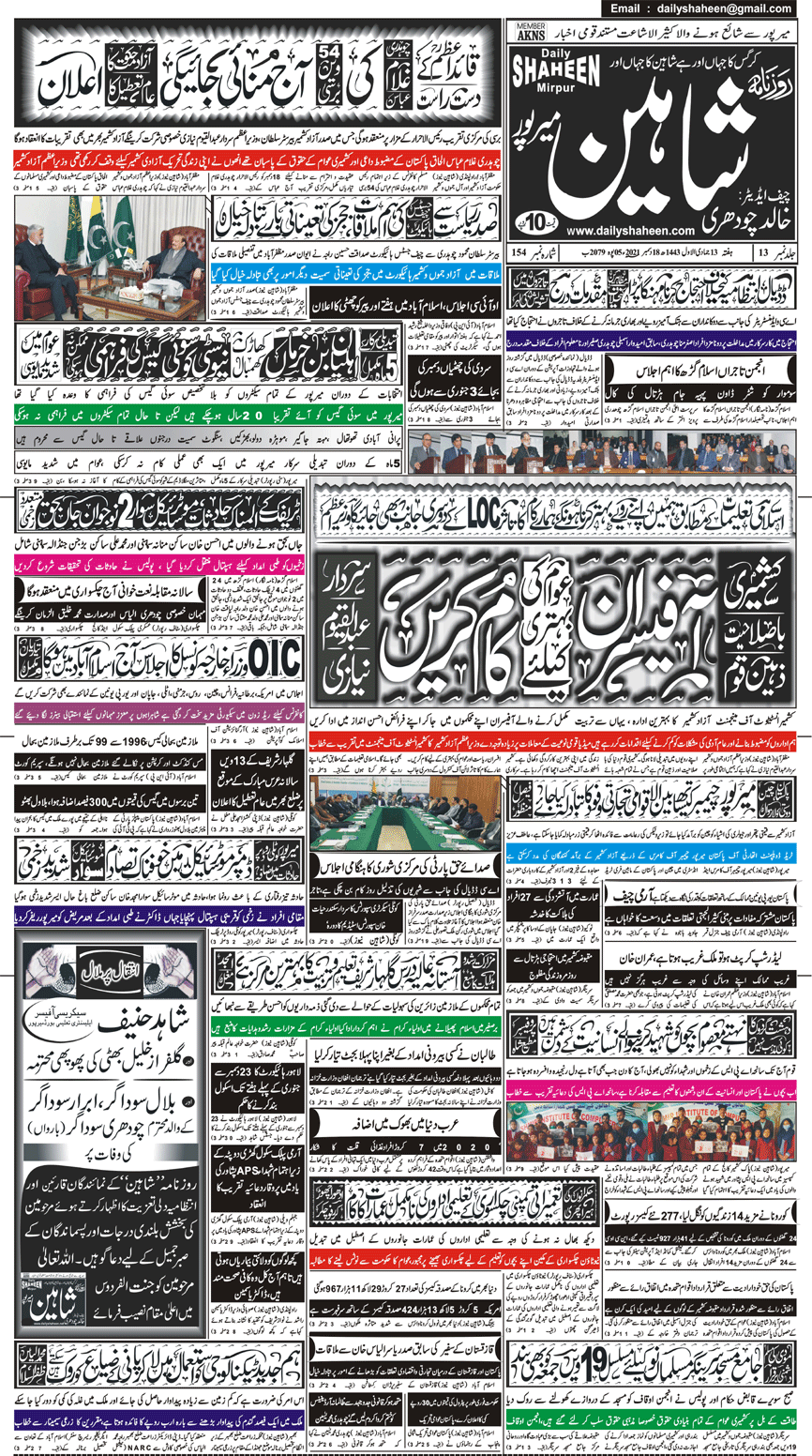 Daily Shaheen Mirpur – Latest news from Mirpur & Azad Kashmir | Mirpur News, Mirpur Newspaper