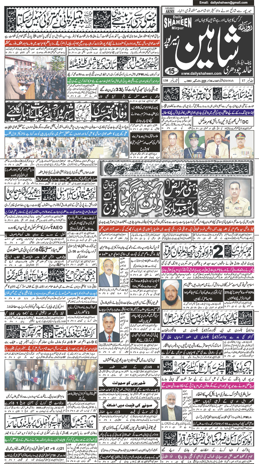 Daily Shaheen Mirpur – Latest news from Mirpur & Azad Kashmir | Mirpur News, Mirpur Newspaper