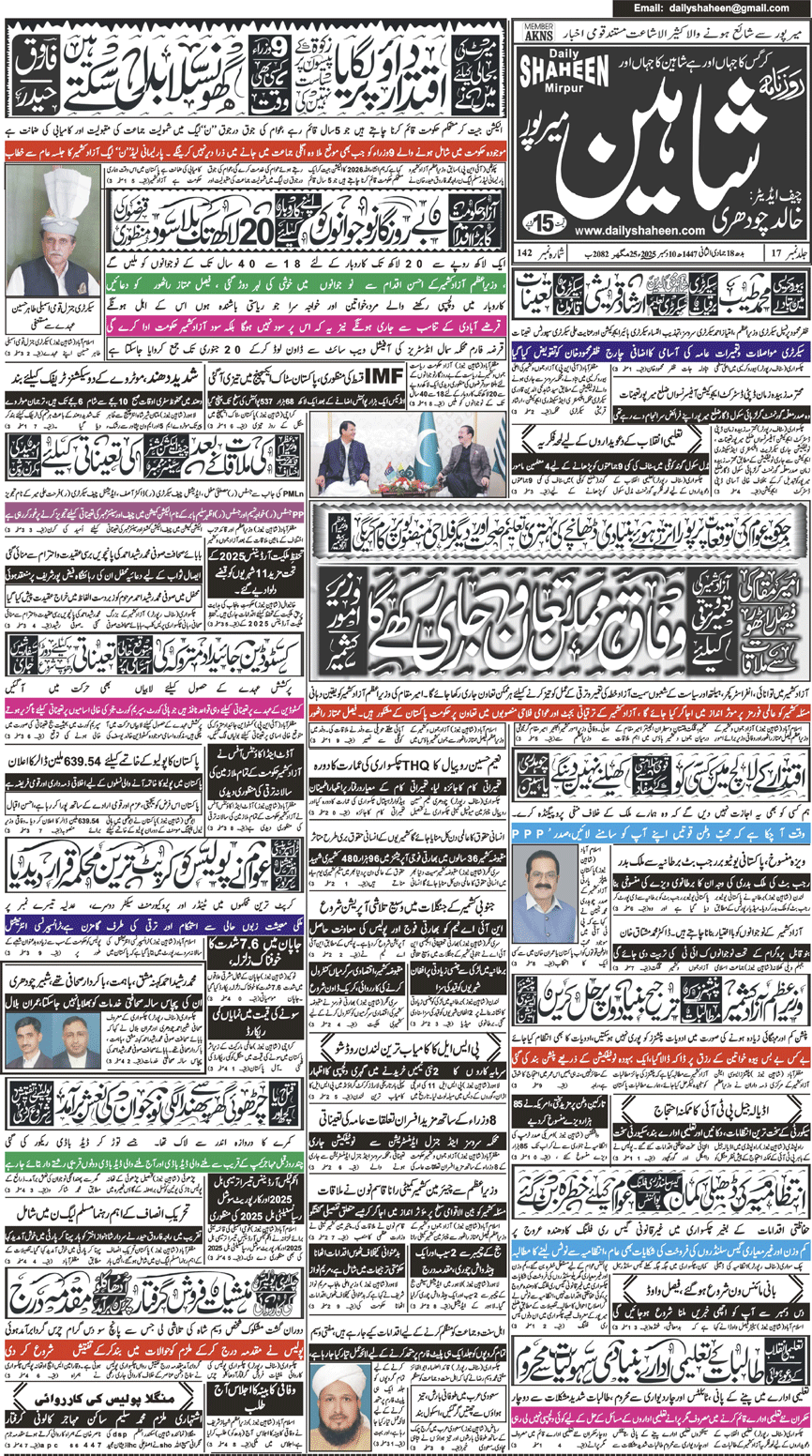 Daily Shaheen Mirpur – Latest news from Mirpur & Azad Kashmir | Mirpur News, Mirpur Newspaper