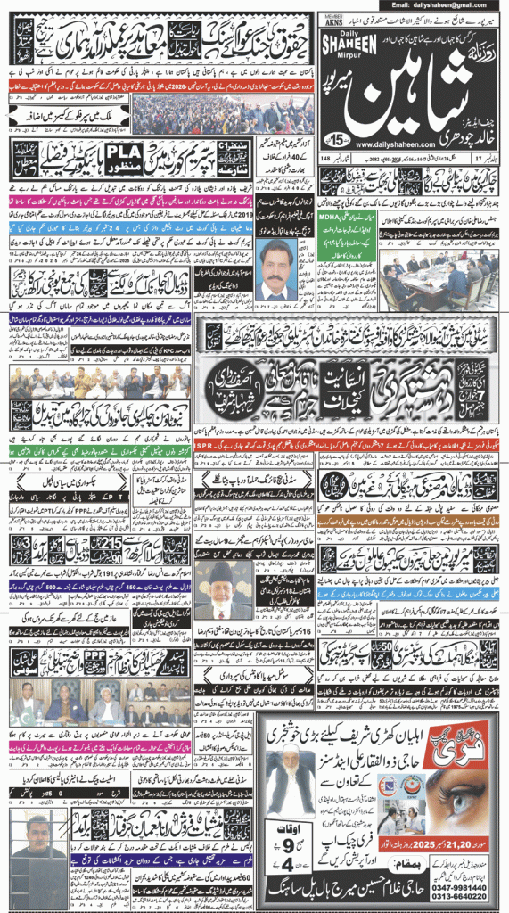 Daily Shaheen Mirpur – Latest news from Mirpur & Azad Kashmir | Mirpur News, Mirpur Newspaper