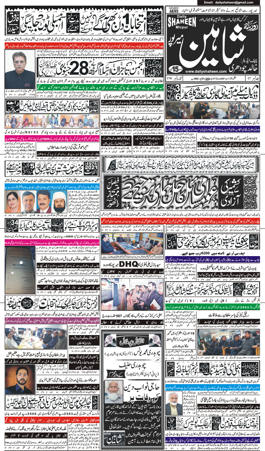 Daily Shaheen Mirpur – Latest news from Mirpur & Azad Kashmir | Mirpur News, Mirpur Newspaper