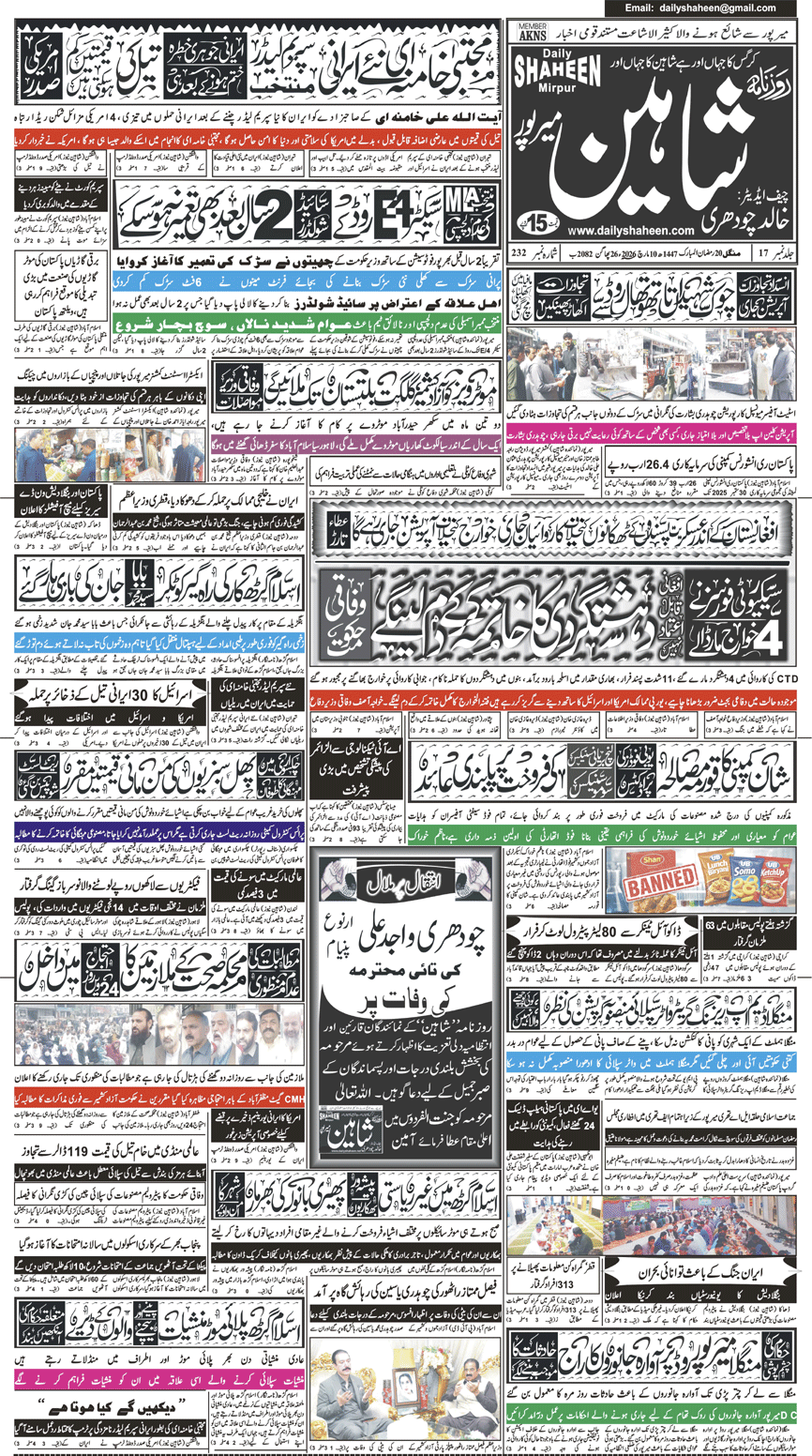 Daily Shaheen Mirpur – Latest news from Mirpur & Azad Kashmir | Mirpur News, Mirpur Newspaper