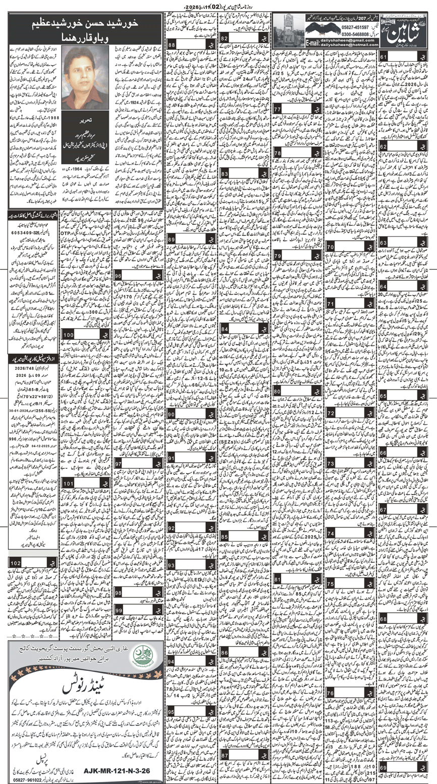 Daily Shaheen Mirpur – Latest news from Mirpur & Azad Kashmir | Mirpur News, Mirpur Newspaper