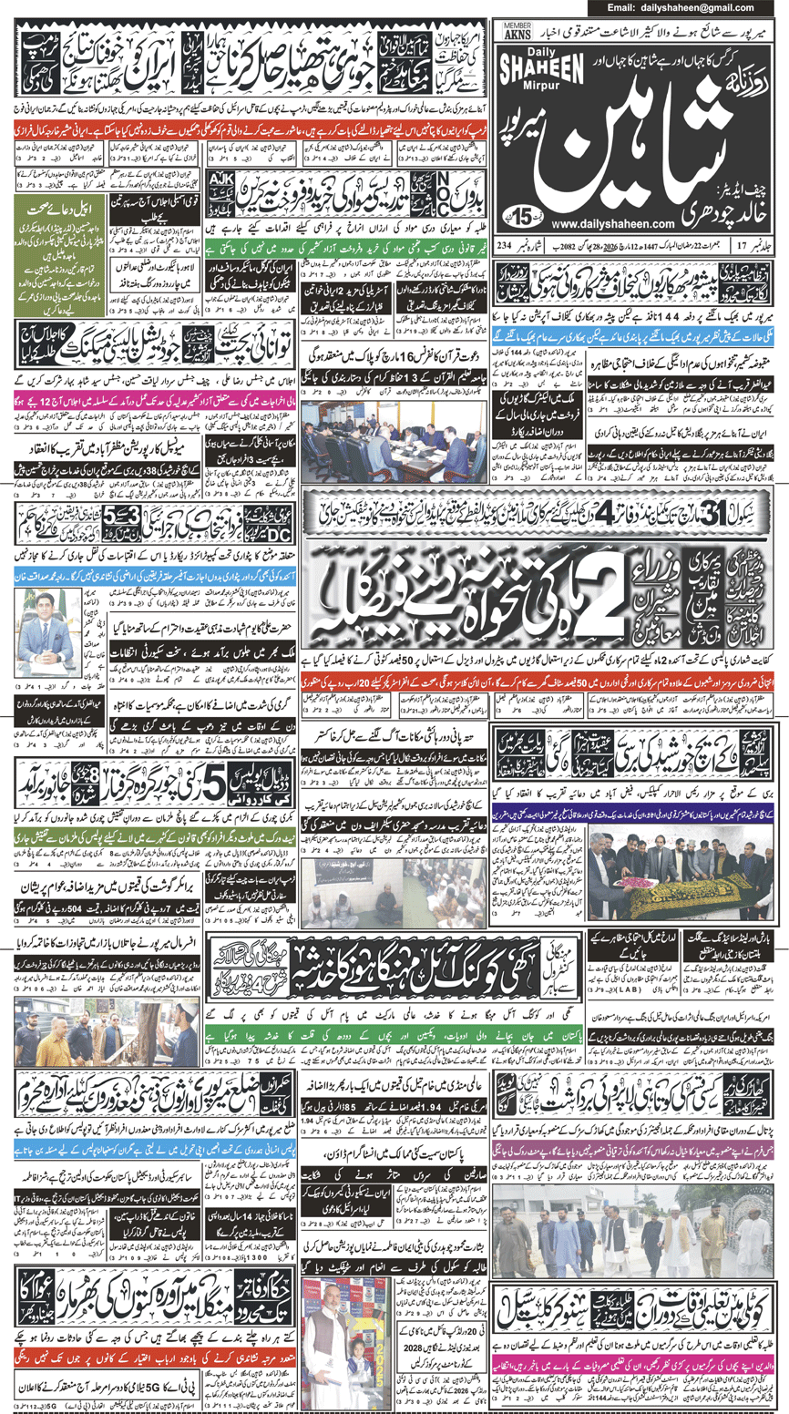 Daily Shaheen Mirpur – Latest news from Mirpur & Azad Kashmir | Mirpur News, Mirpur Newspaper