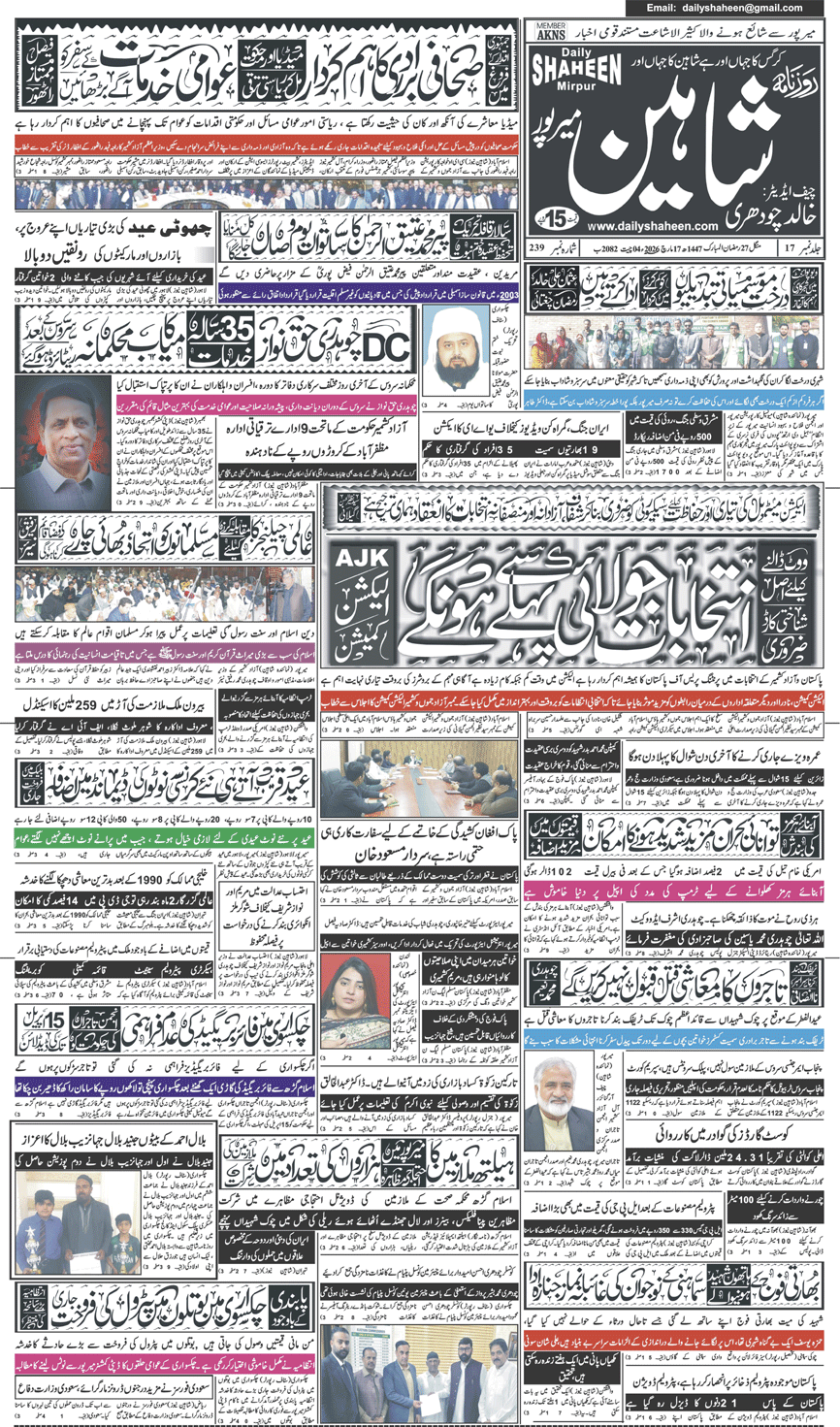 Daily Shaheen Mirpur – Latest news from Mirpur & Azad Kashmir | Mirpur News, Mirpur Newspaper