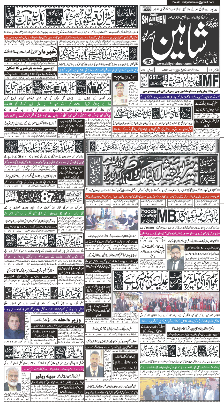 Daily Shaheen Mirpur – Latest news from Mirpur & Azad Kashmir | Mirpur News, Mirpur Newspaper