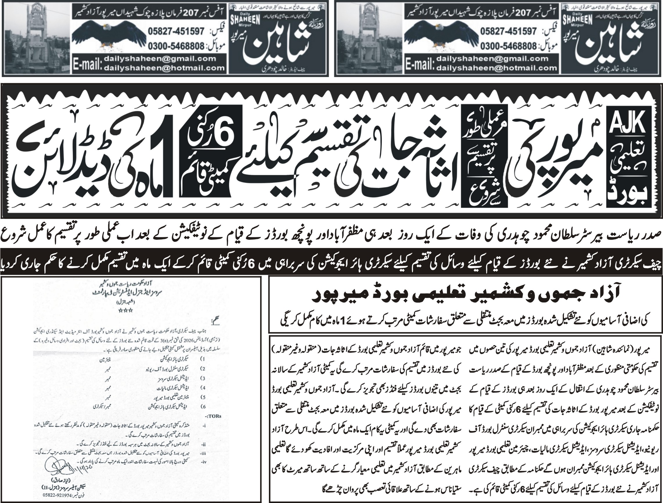 Daily Shaheen Mirpur – Latest news from Mirpur & Azad Kashmir | Mirpur News, Mirpur Newspaper