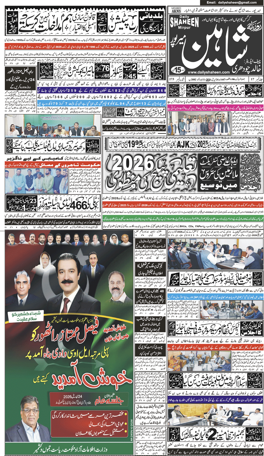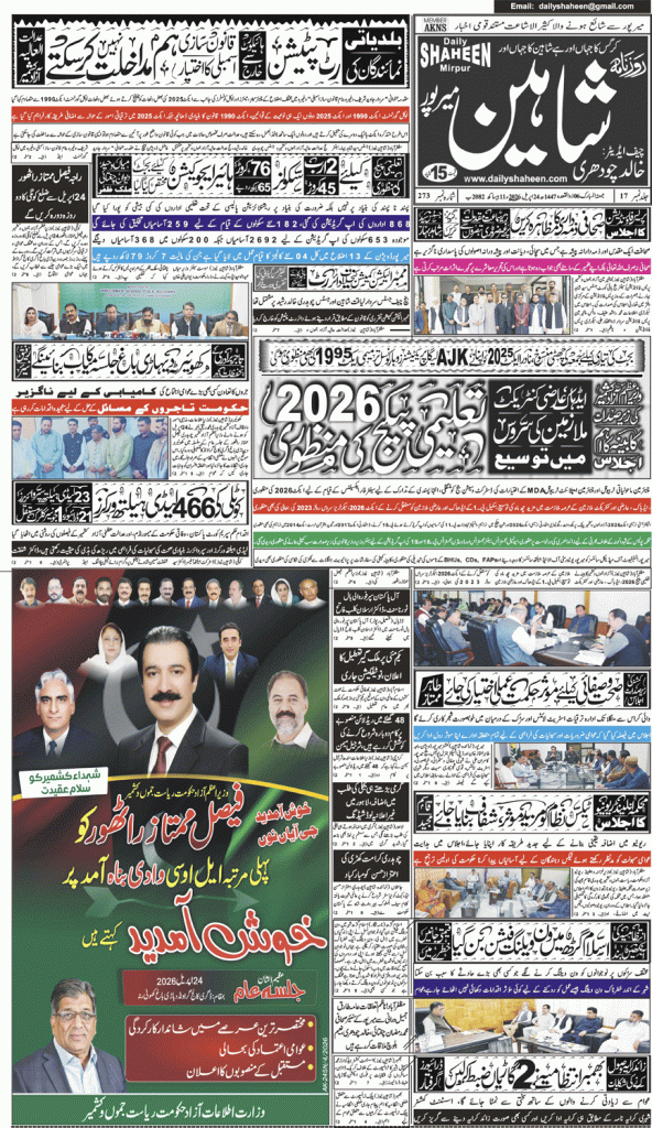 Daily Shaheen Mirpur – Latest news from Mirpur & Azad Kashmir | Mirpur News, Mirpur Newspaper