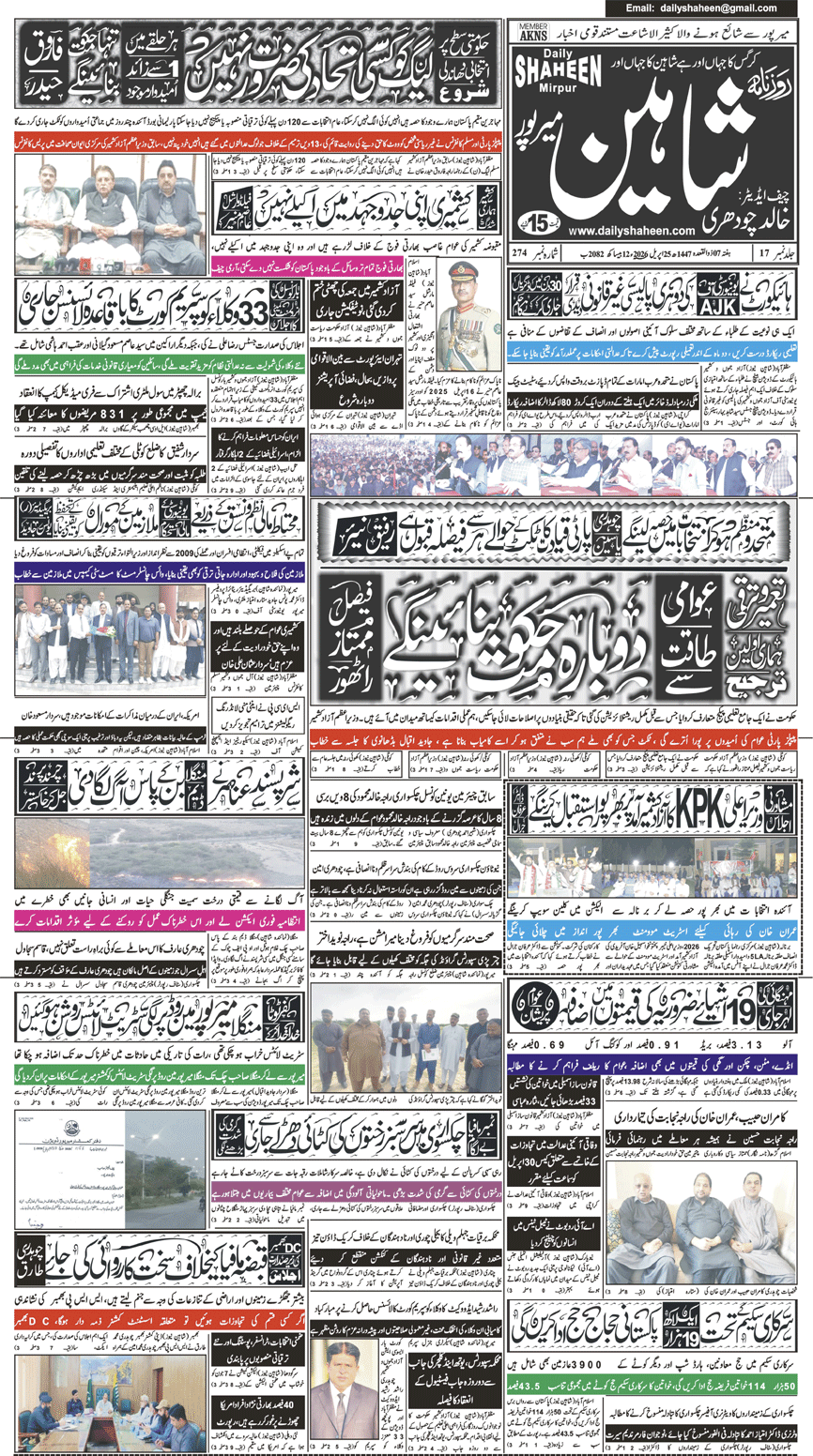 Daily Shaheen Mirpur – Latest news from Mirpur & Azad Kashmir | Mirpur News, Mirpur Newspaper
