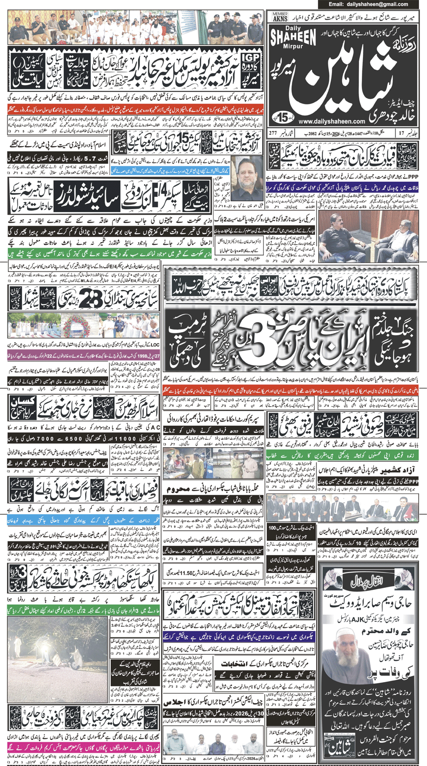 Daily Shaheen Mirpur – Latest news from Mirpur & Azad Kashmir | Mirpur News, Mirpur Newspaper