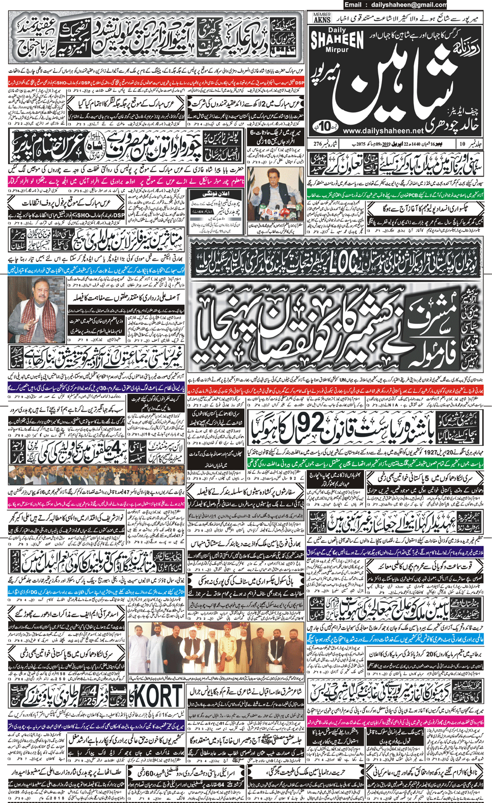 Daily Shaheen Mirpur – Latest news from Mirpur & Azad Kashmir | Mirpur News, Mirpur Newspaper