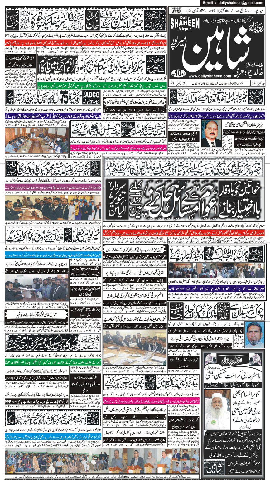 Daily Shaheen Mirpur – Latest news from Mirpur & Azad Kashmir | Mirpur News, Mirpur Newspaper