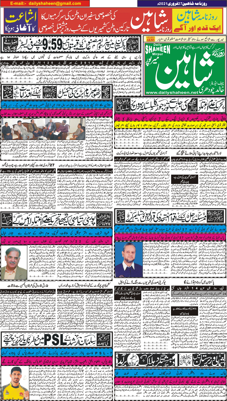 Daily Shaheen Mirpur – Latest news from Mirpur & Azad Kashmir | Mirpur News, Mirpur Newspaper