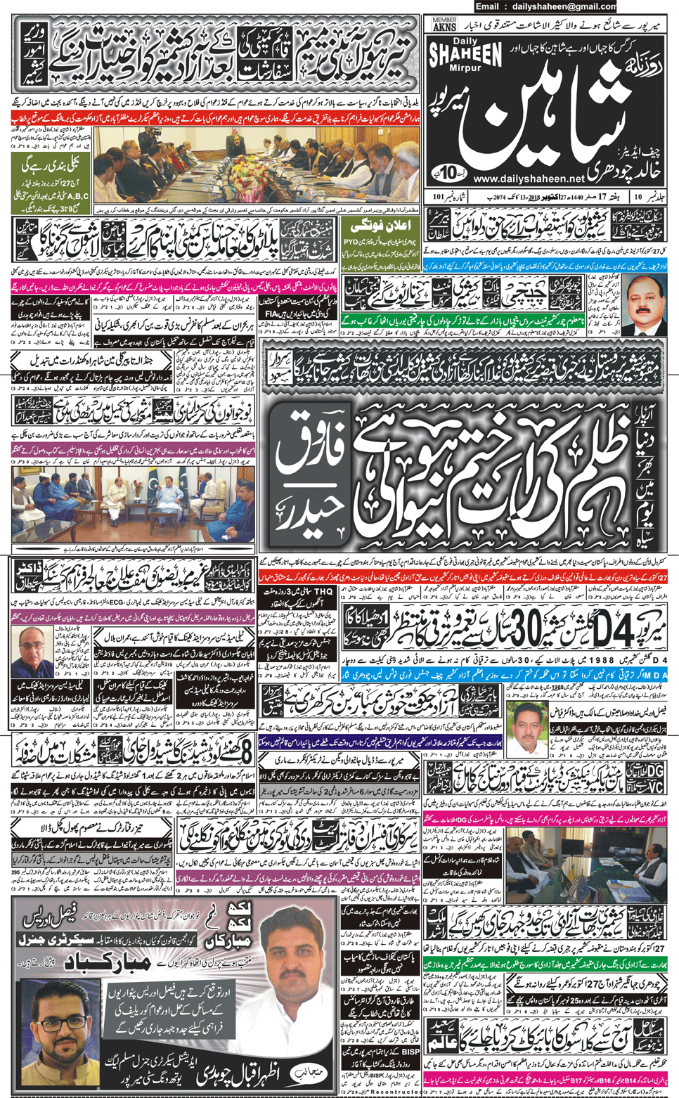 Daily Shaheen Mirpur – Latest news from Mirpur & Azad Kashmir | Mirpur News, Mirpur Newspaper
