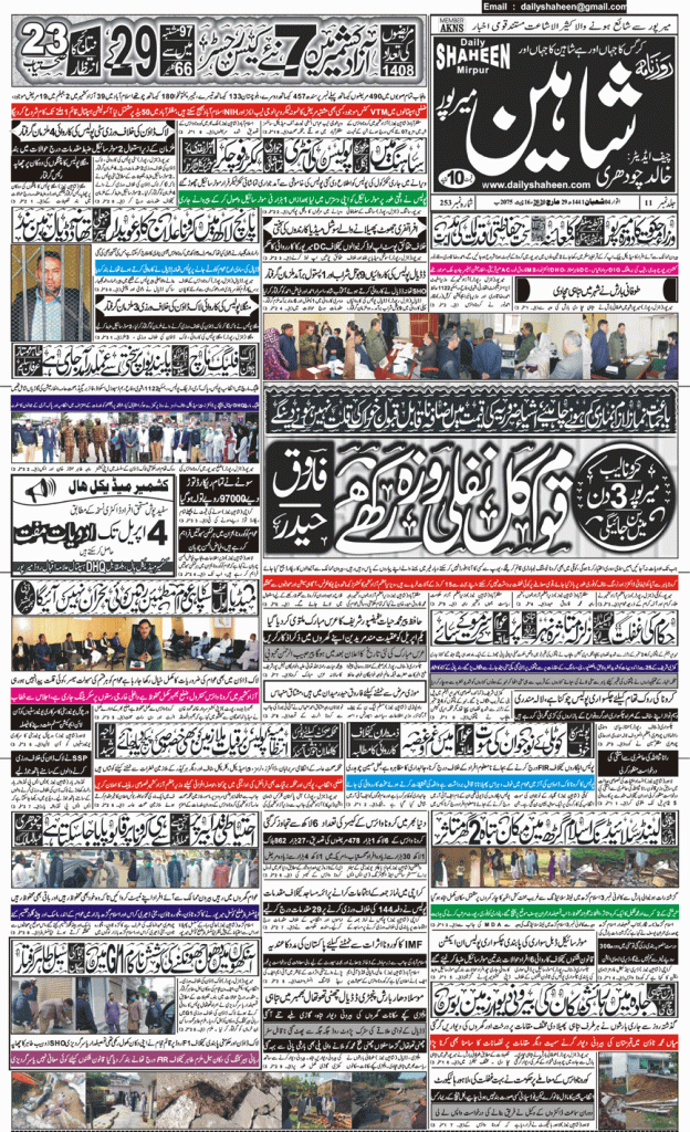 Daily Shaheen Mirpur – Latest news from Mirpur & Azad Kashmir | Mirpur News, Mirpur Newspaper
