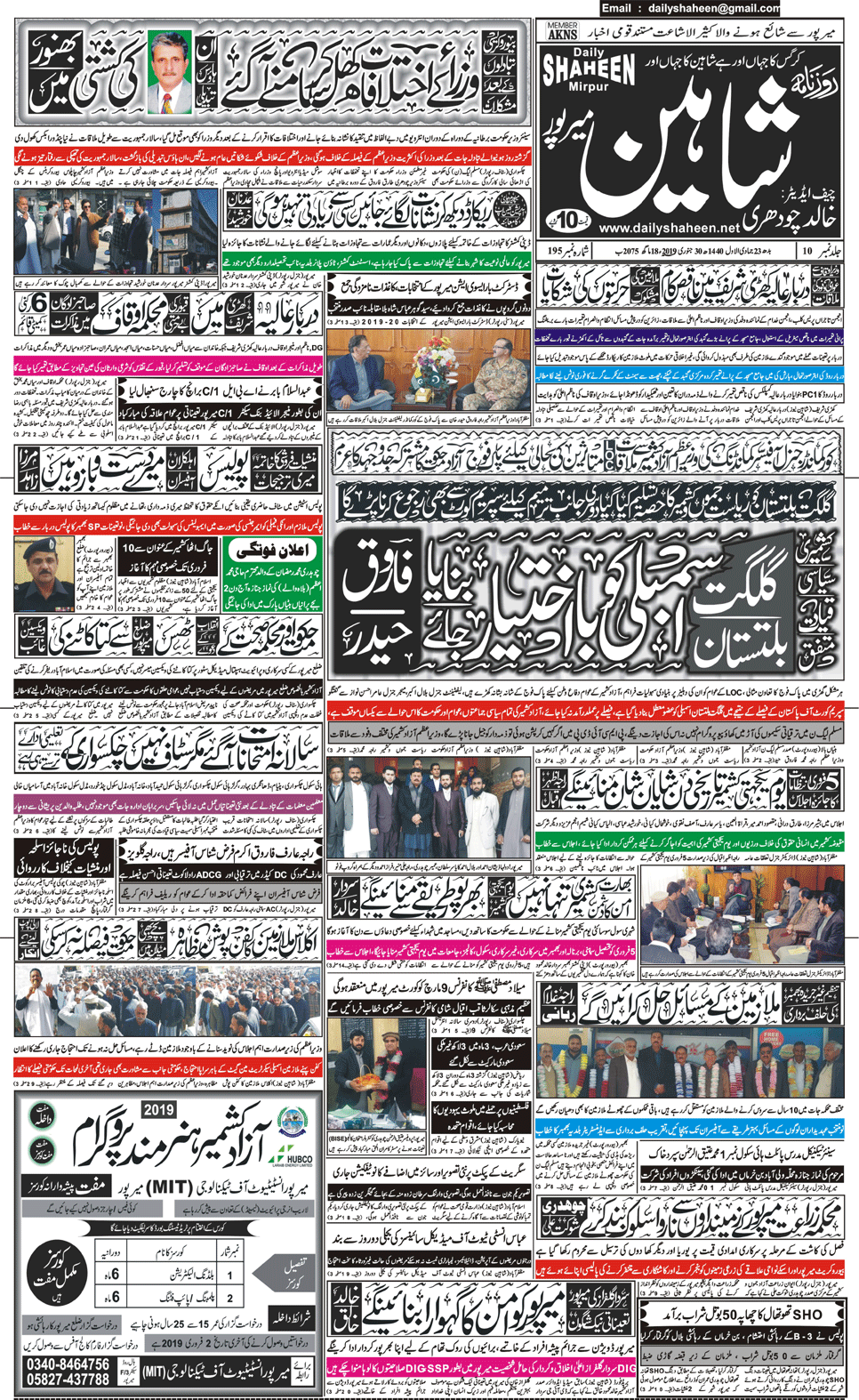 Daily Shaheen Mirpur – Latest news from Mirpur & Azad Kashmir | Mirpur News, Mirpur Newspaper