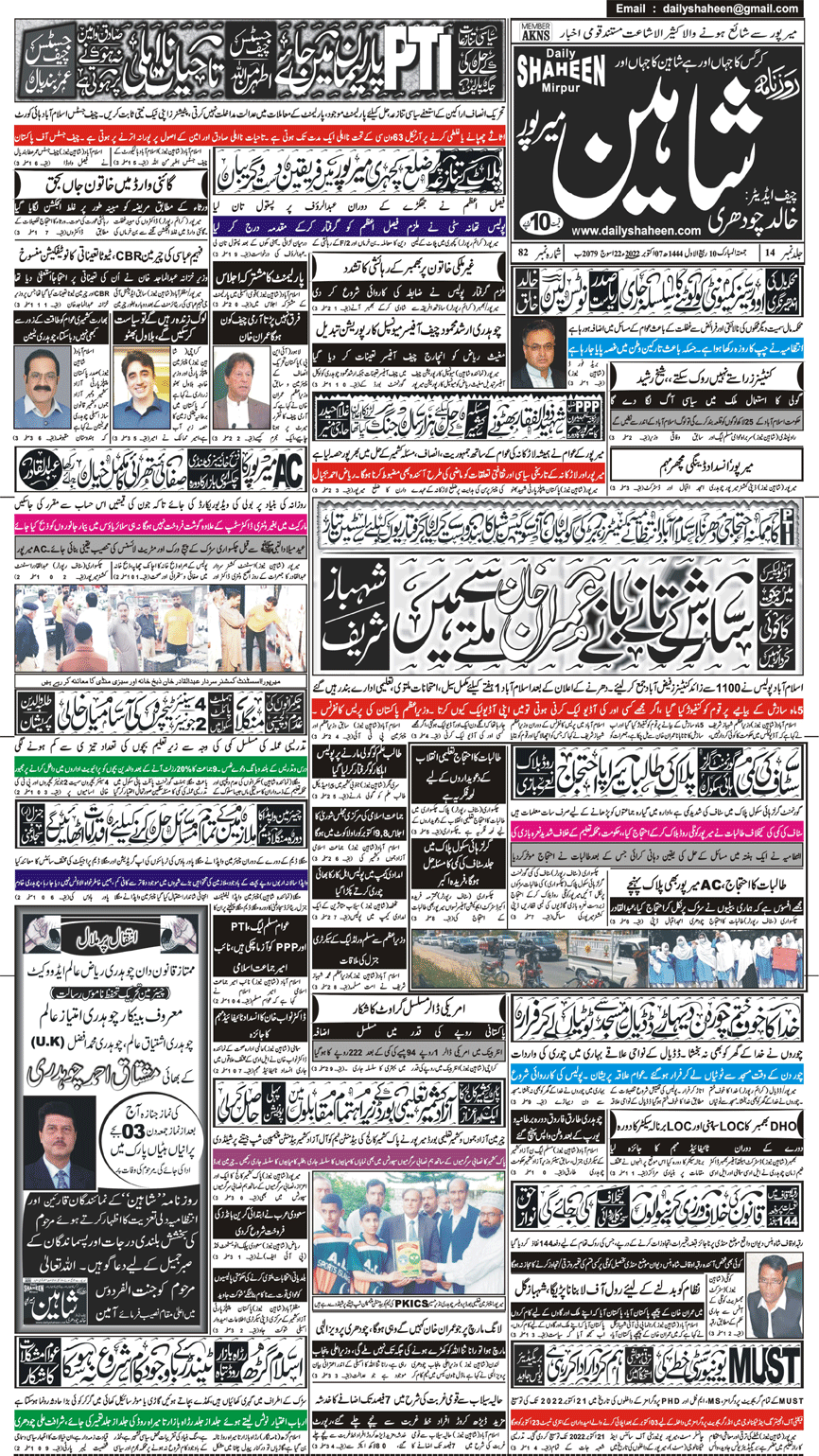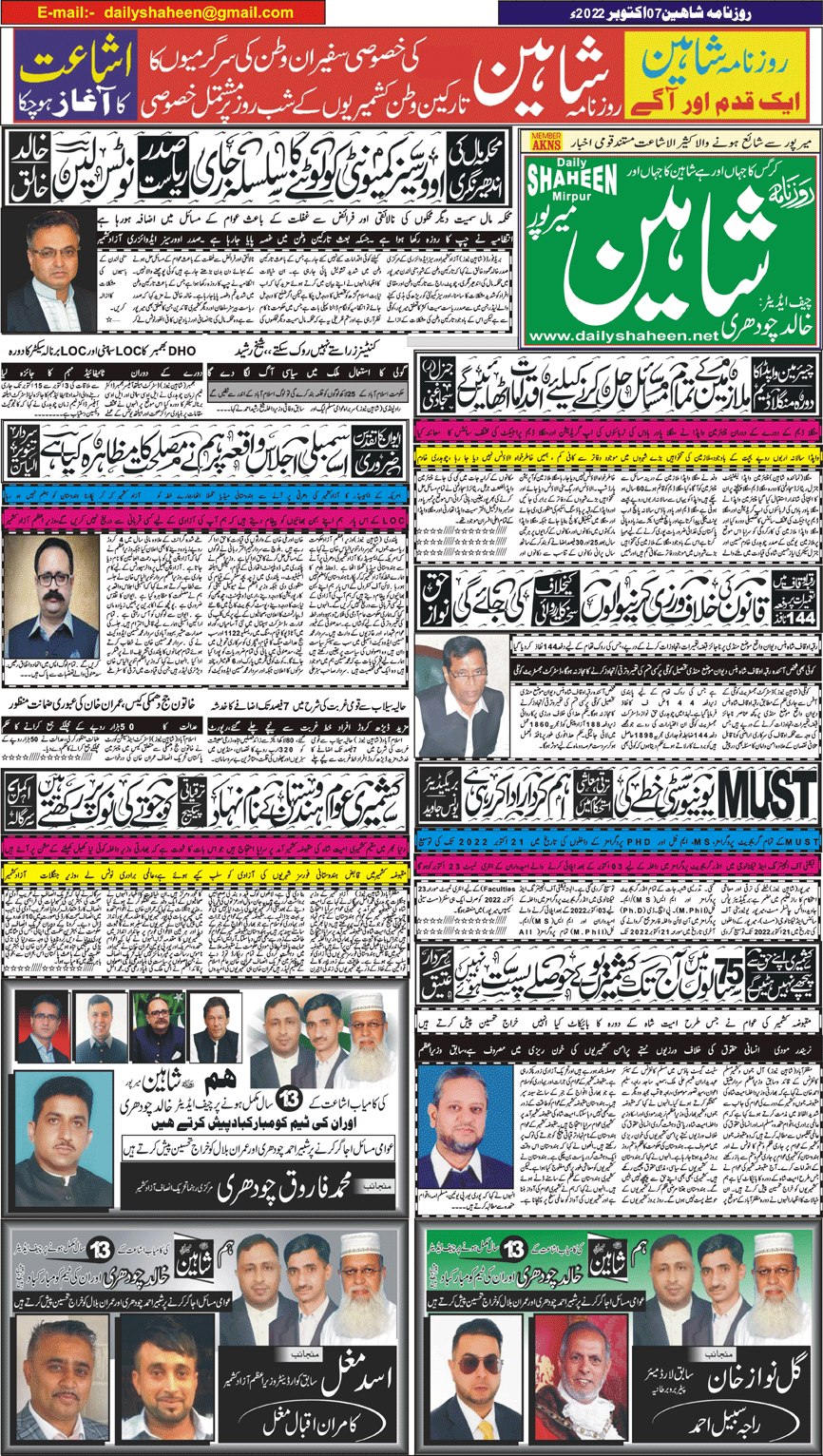 Daily Shaheen Mirpur – Latest news from Mirpur & Azad Kashmir | Mirpur News, Mirpur Newspaper