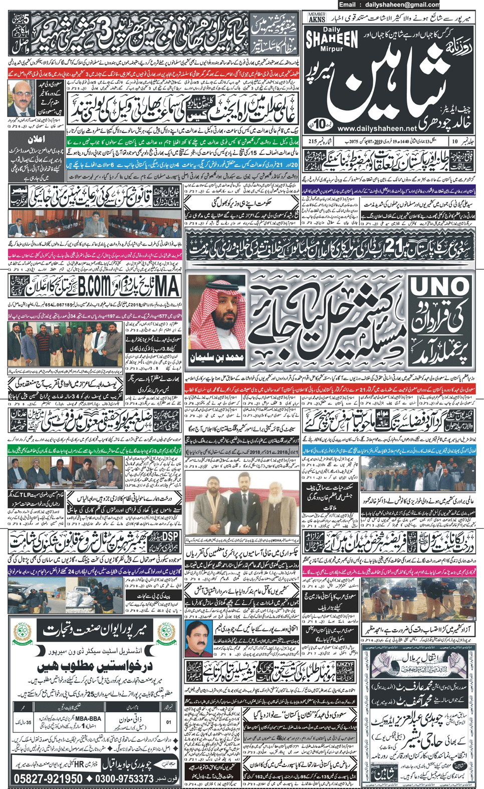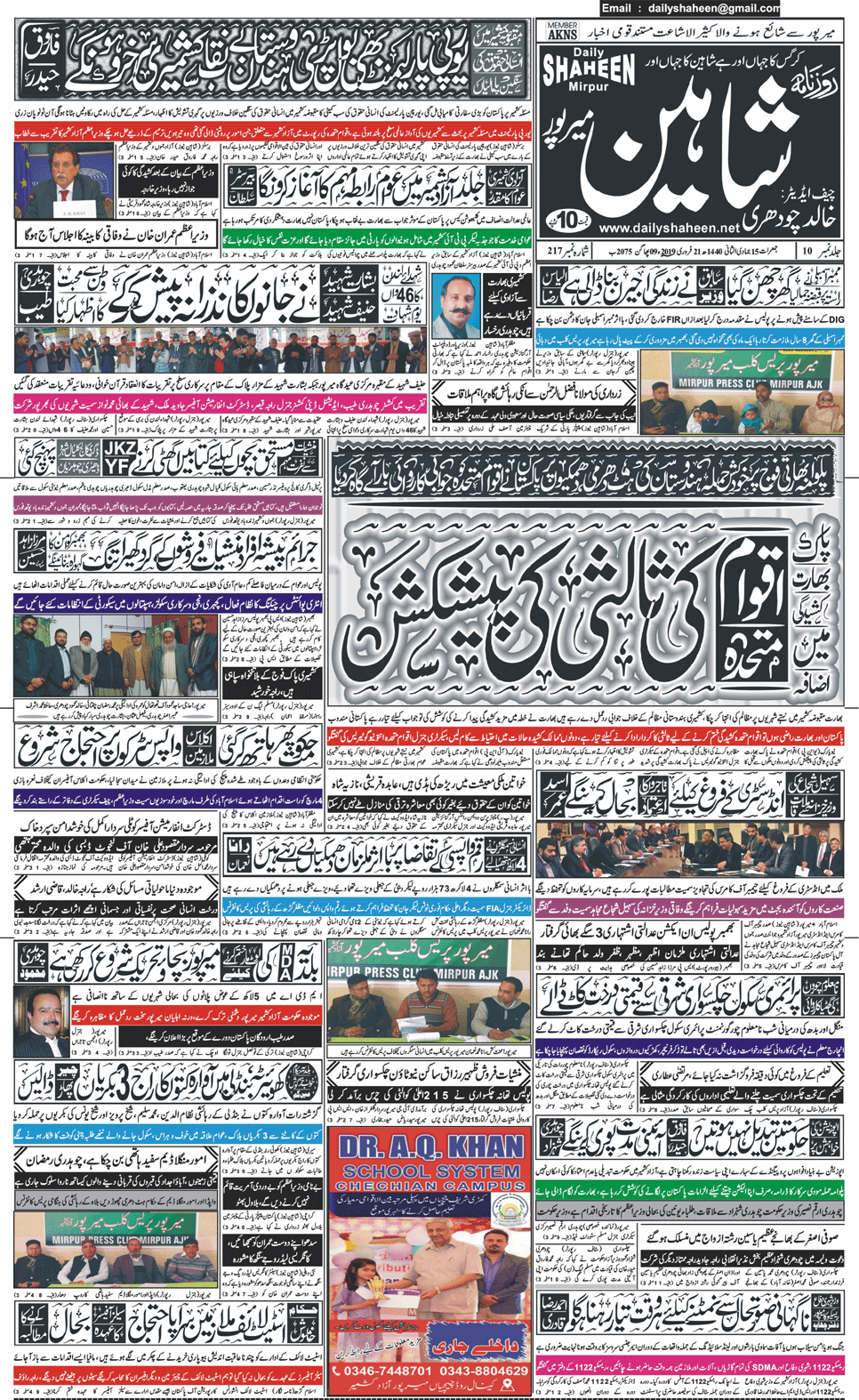 Daily Shaheen Mirpur – Latest news from Mirpur & Azad Kashmir | Mirpur News, Mirpur Newspaper