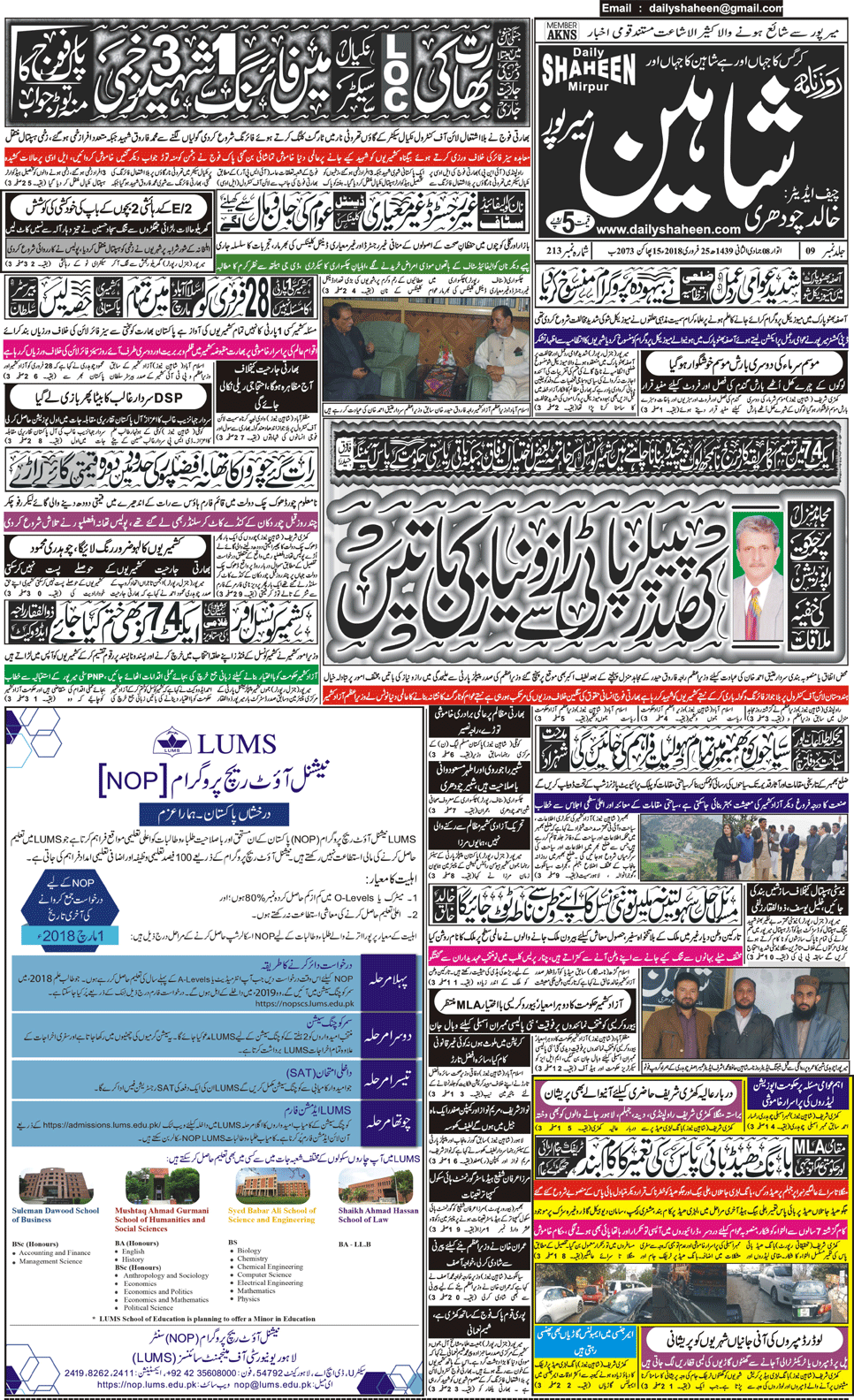 Daily Shaheen Mirpur – Latest news from Mirpur & Azad Kashmir | Mirpur News, Mirpur Newspaper