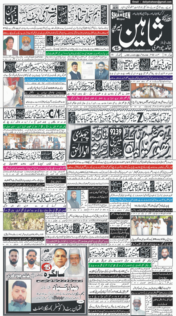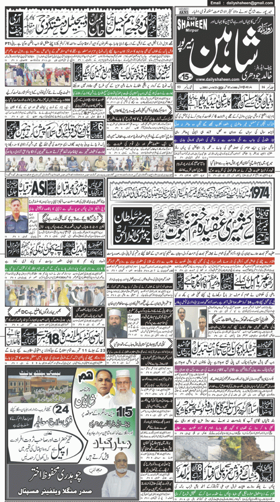 Daily Shaheen Mirpur – Latest news from Mirpur & Azad Kashmir | Mirpur News, Mirpur Newspaper