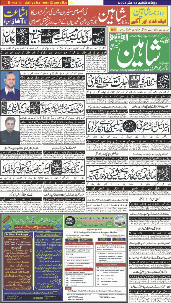 Daily Shaheen Mirpur – Latest news from Mirpur & Azad Kashmir | Mirpur News, Mirpur Newspaper