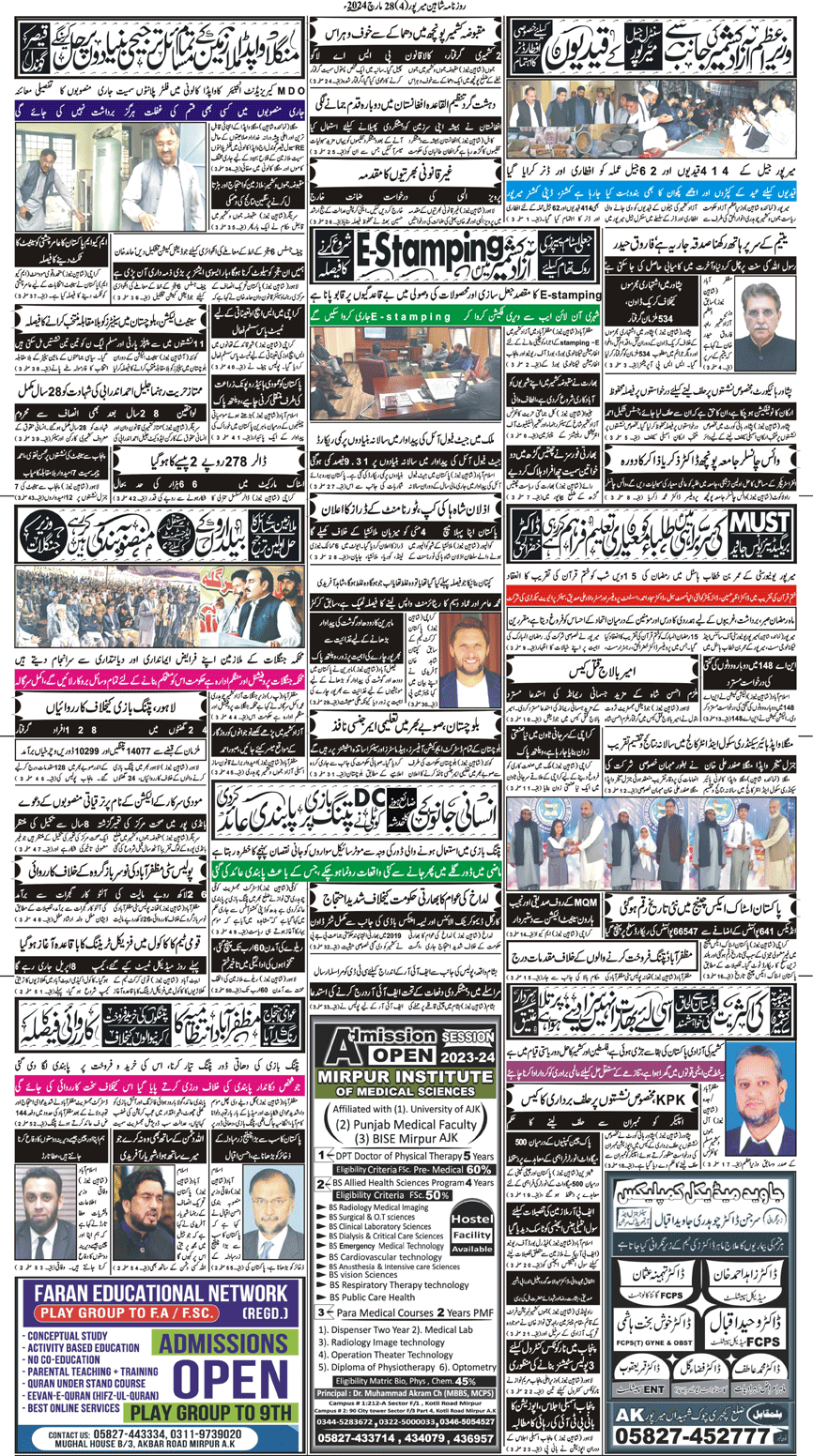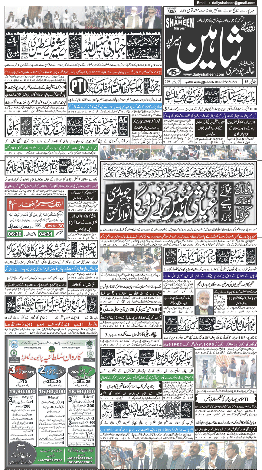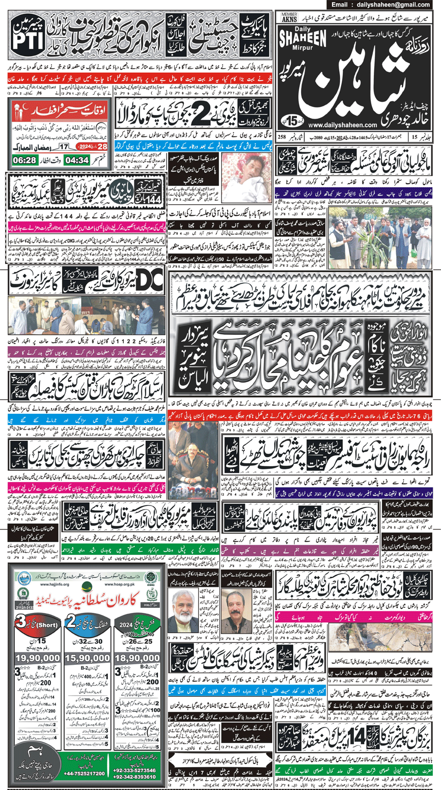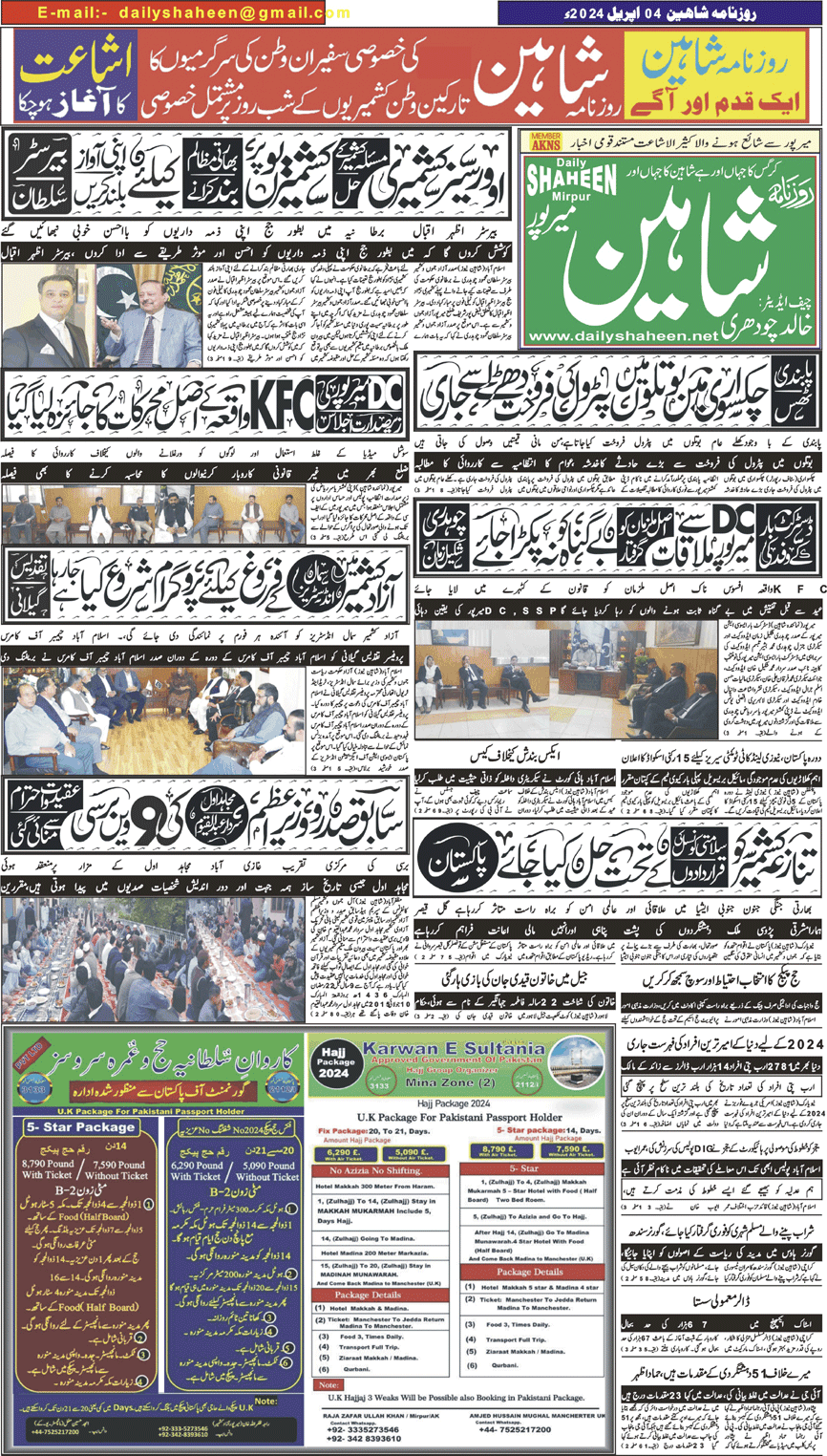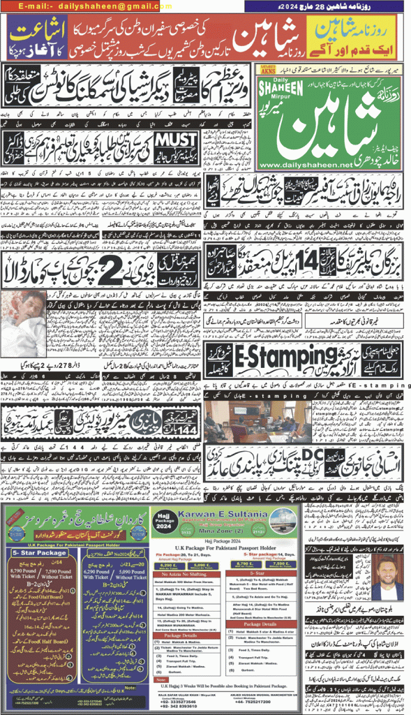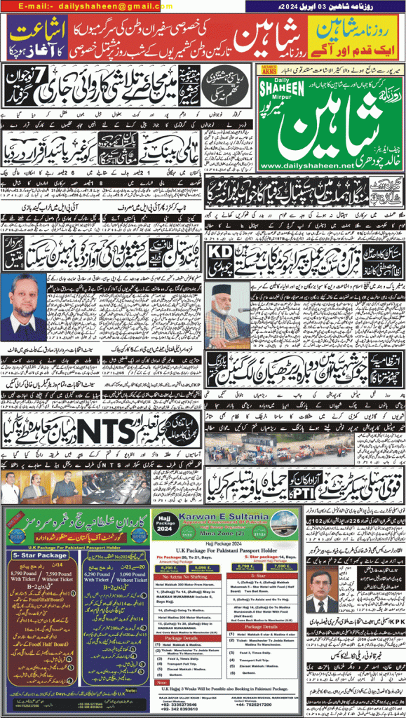 Daily Shaheen Mirpur – Latest news from Mirpur & Azad Kashmir | Mirpur News, Mirpur Newspaper