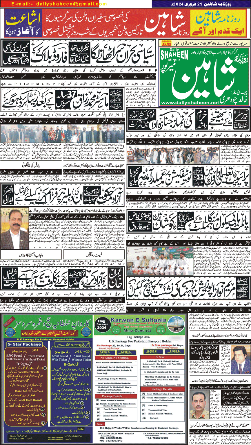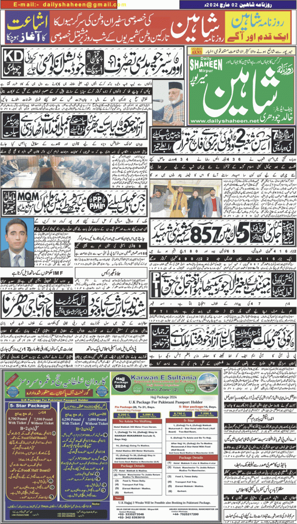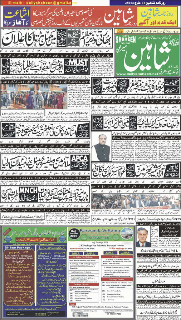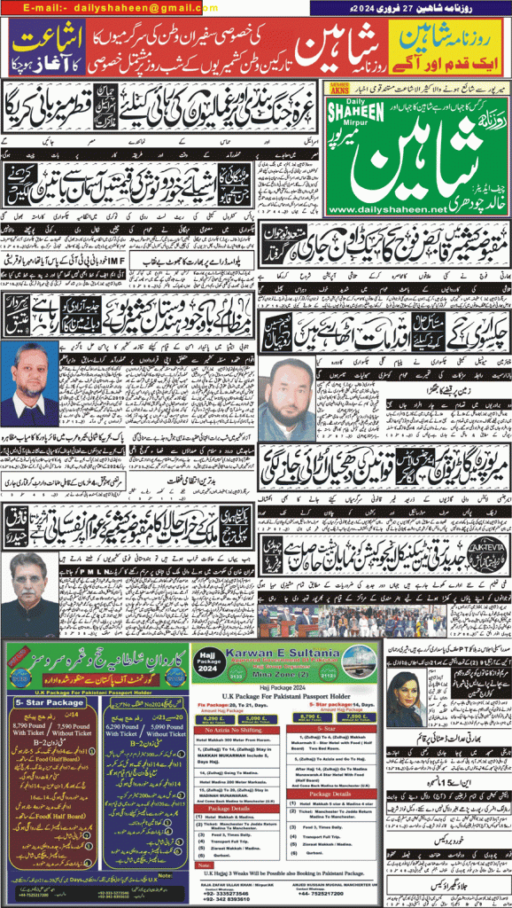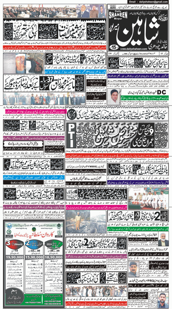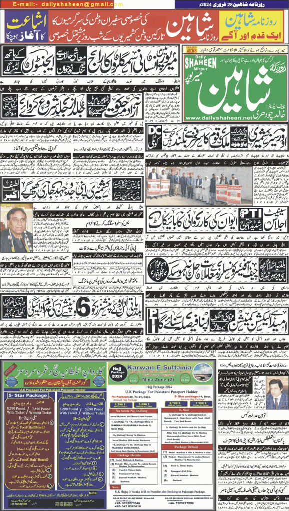 Daily Shaheen Mirpur – Latest news from Mirpur & Azad Kashmir | Mirpur News, Mirpur Newspaper