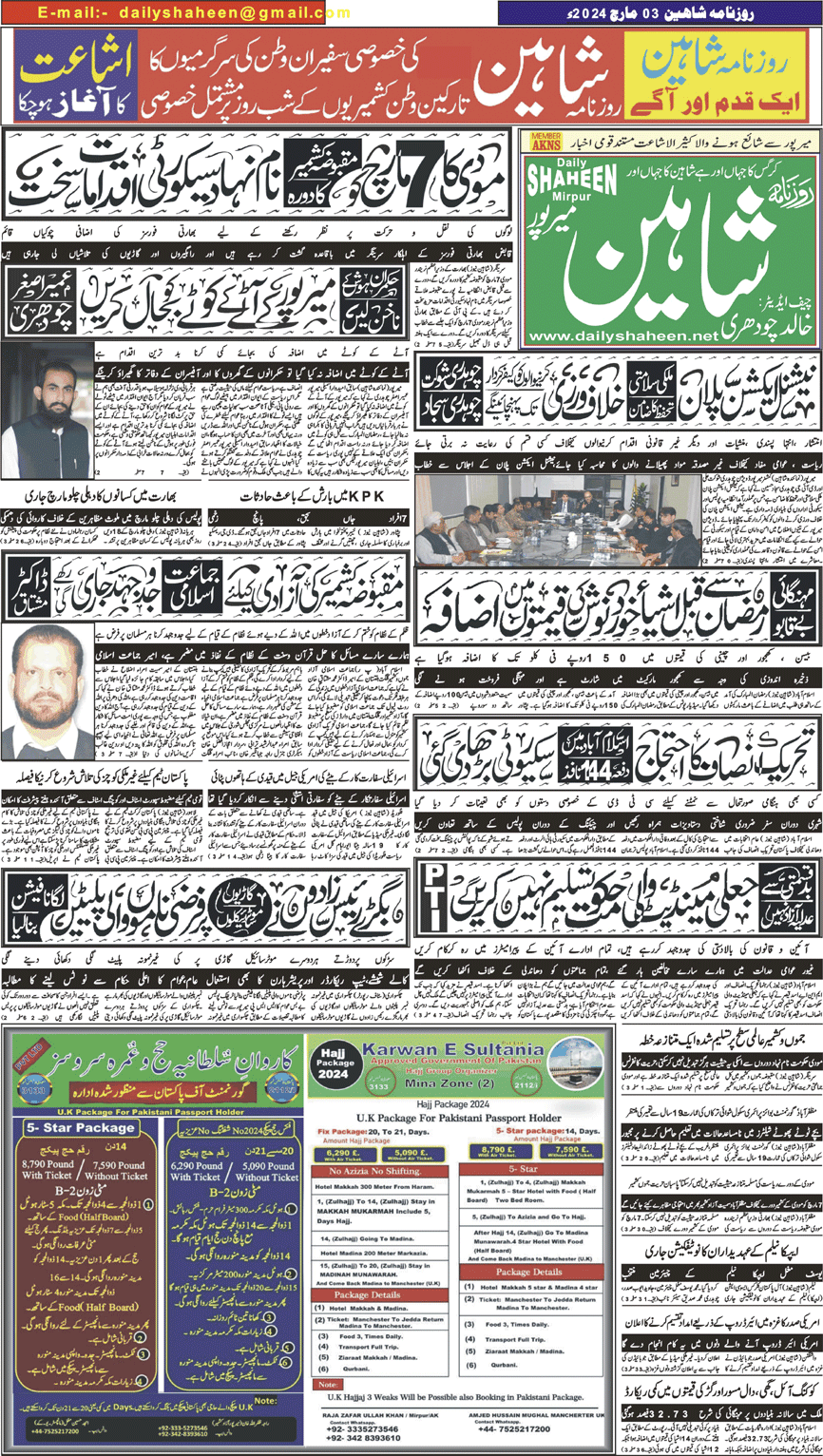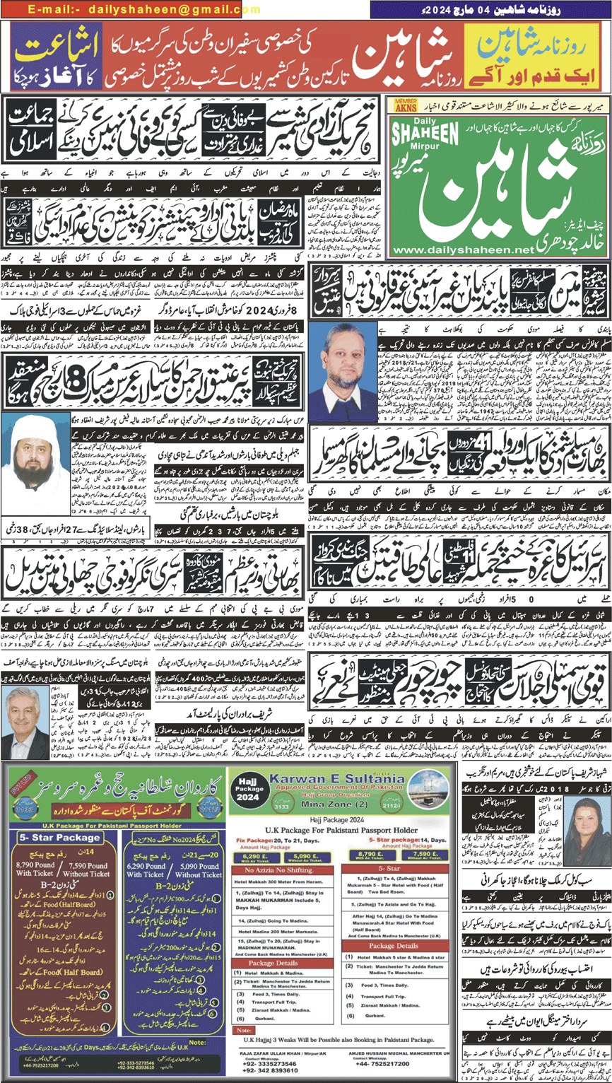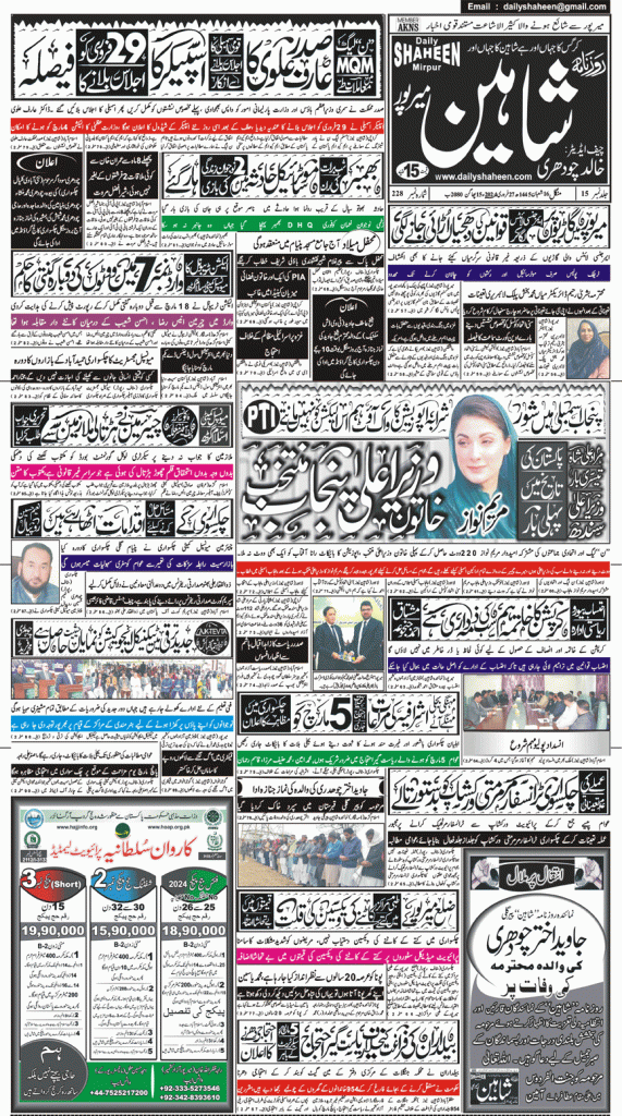 Daily Shaheen Mirpur – Latest news from Mirpur & Azad Kashmir | Mirpur News, Mirpur Newspaper