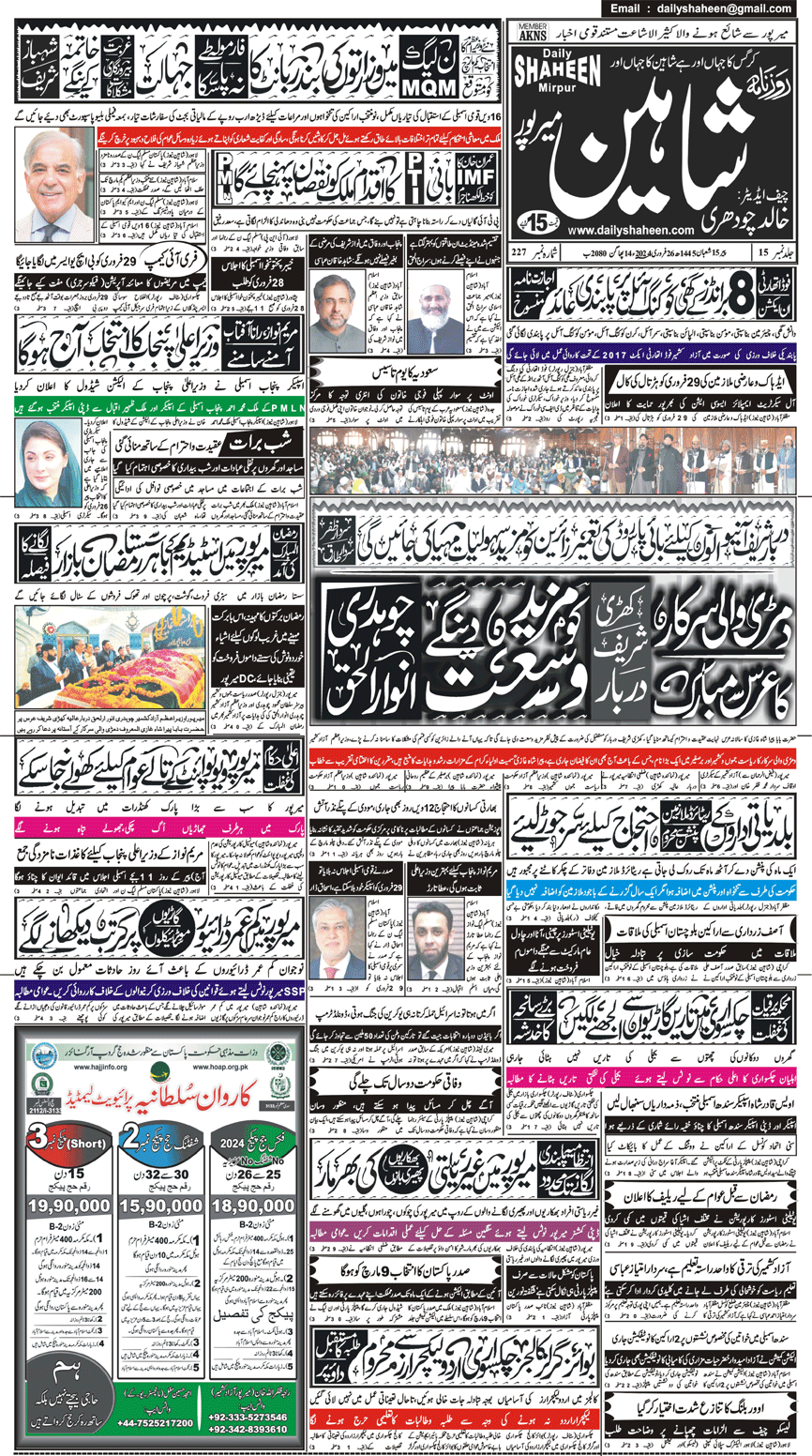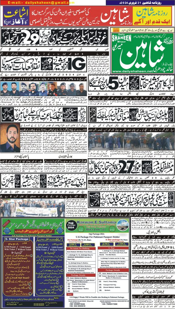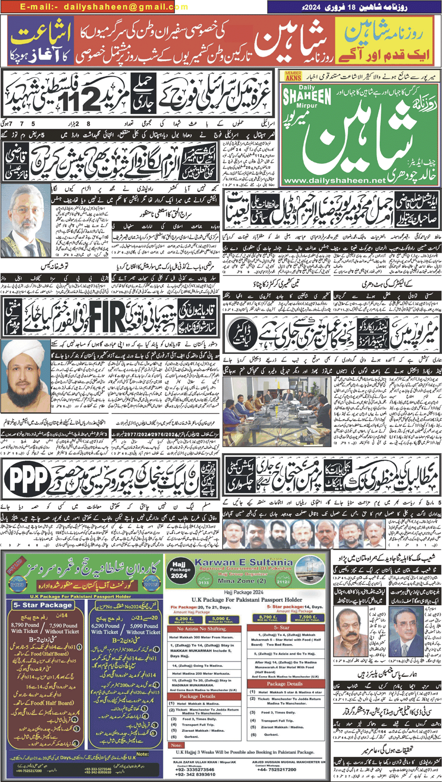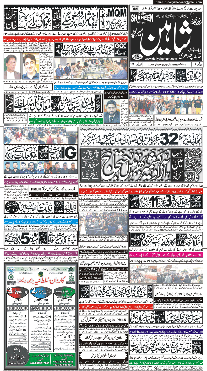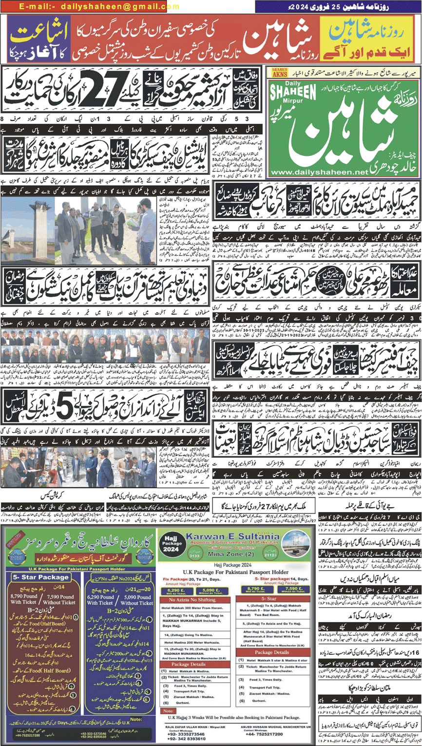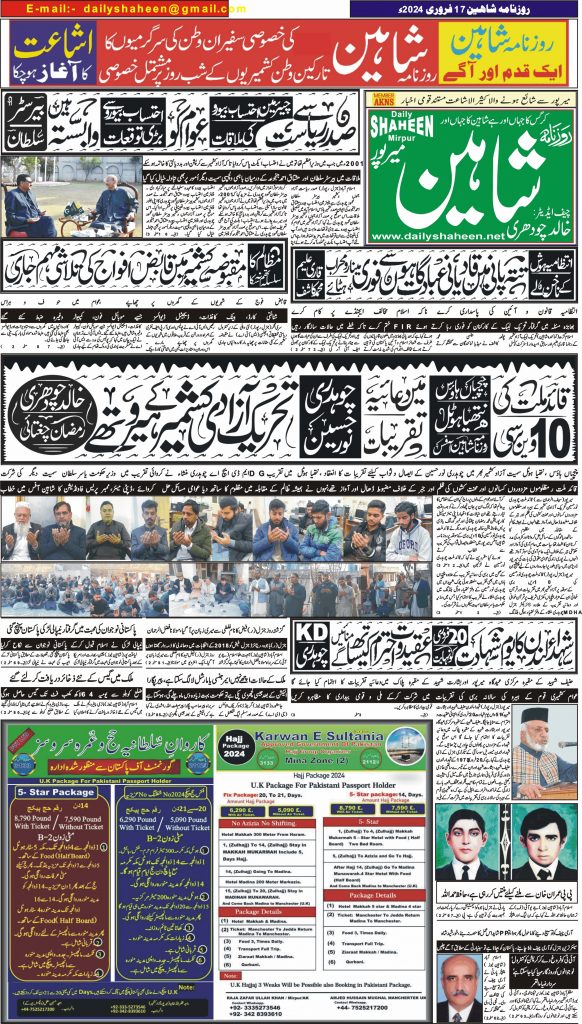 Daily Shaheen Mirpur – Latest news from Mirpur & Azad Kashmir | Mirpur News, Mirpur Newspaper