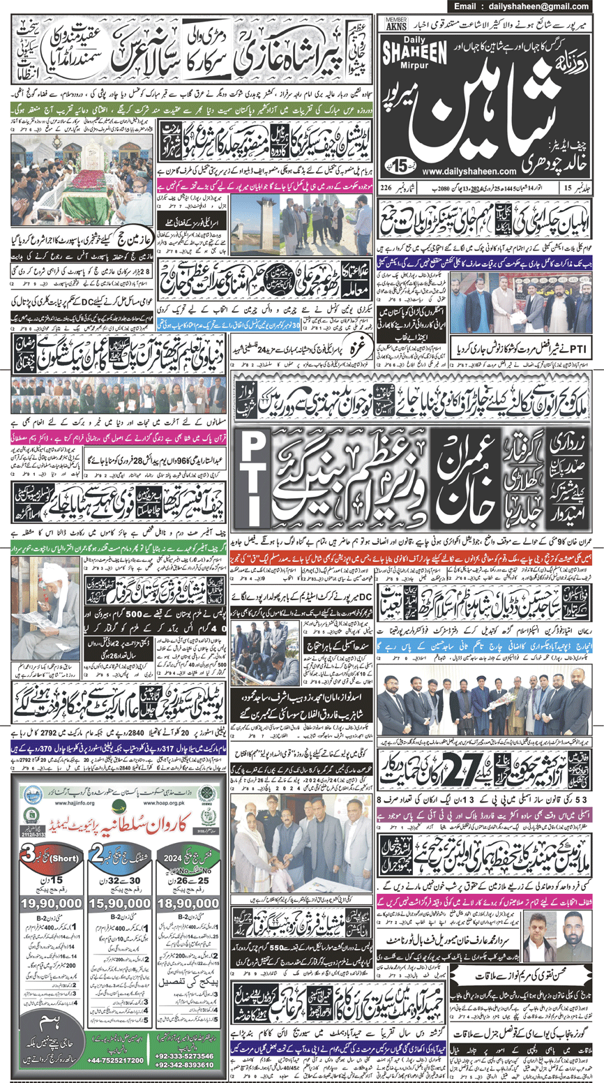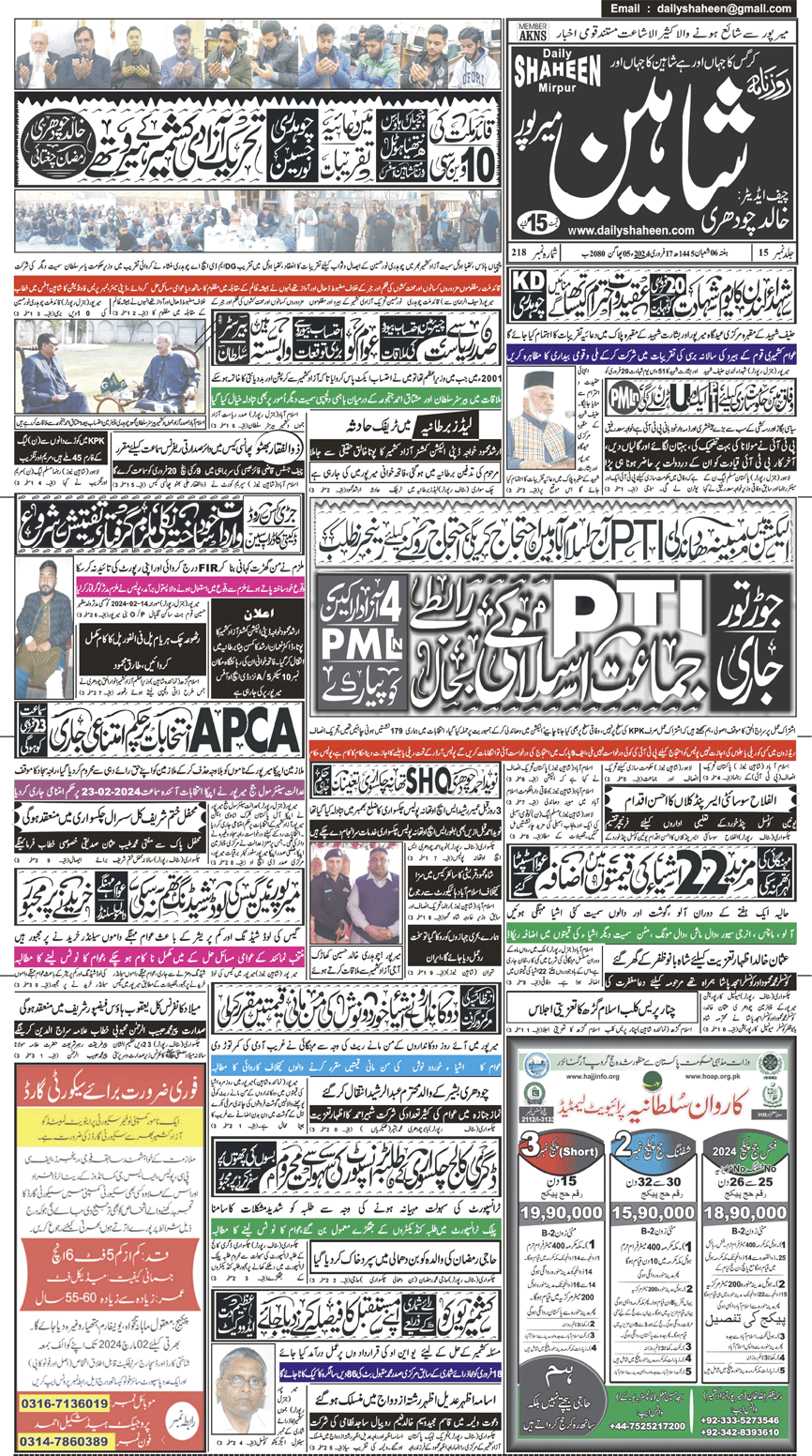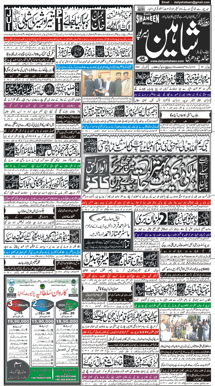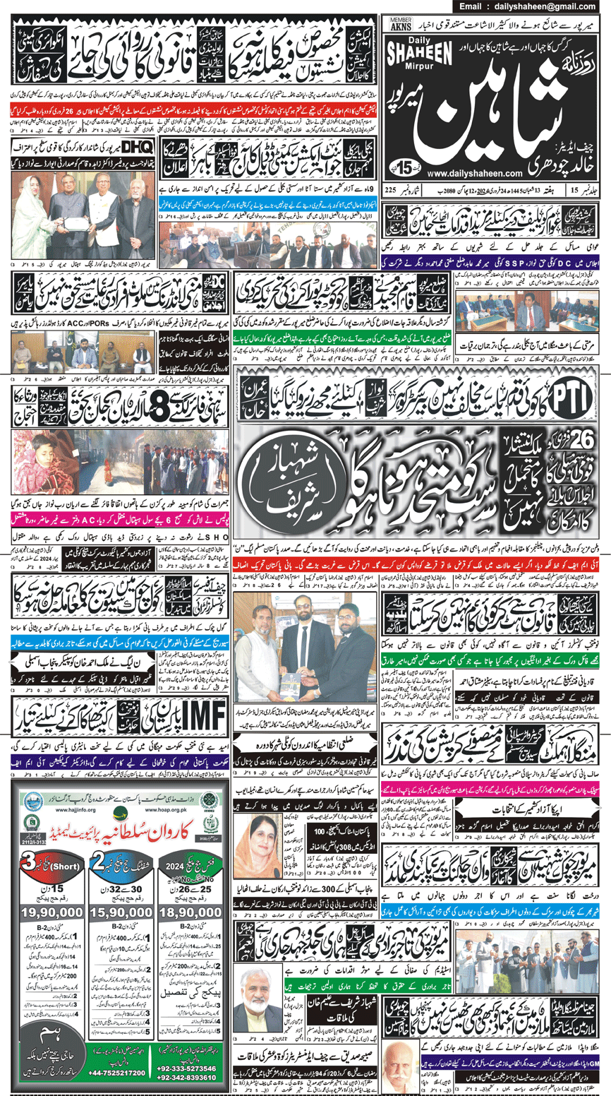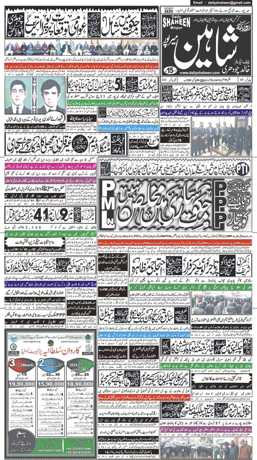 Daily Shaheen Mirpur – Latest news from Mirpur & Azad Kashmir | Mirpur News, Mirpur Newspaper