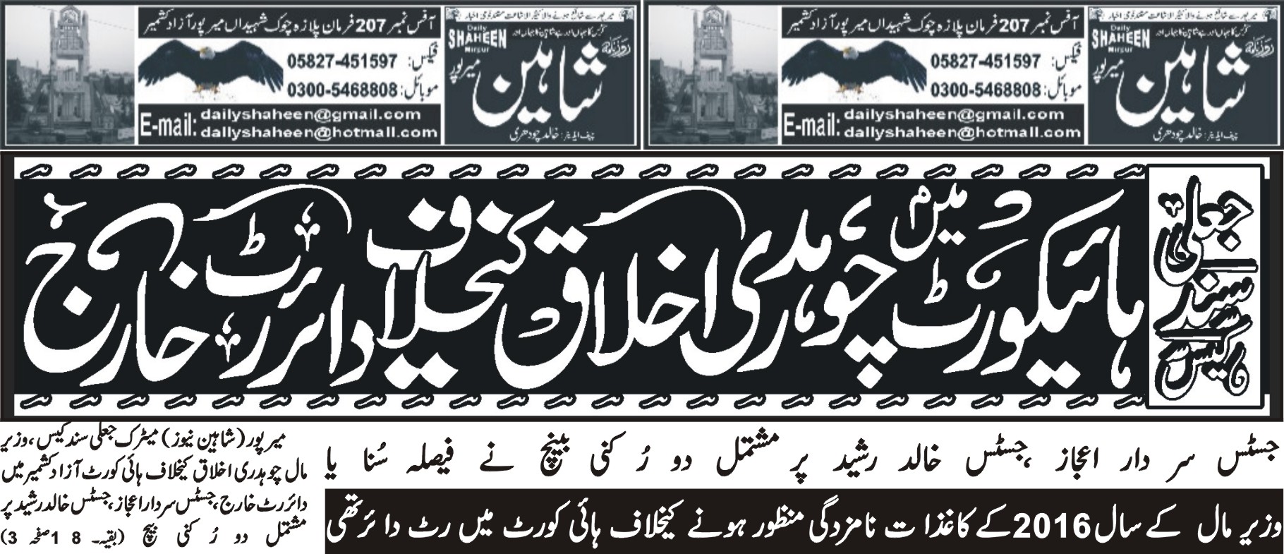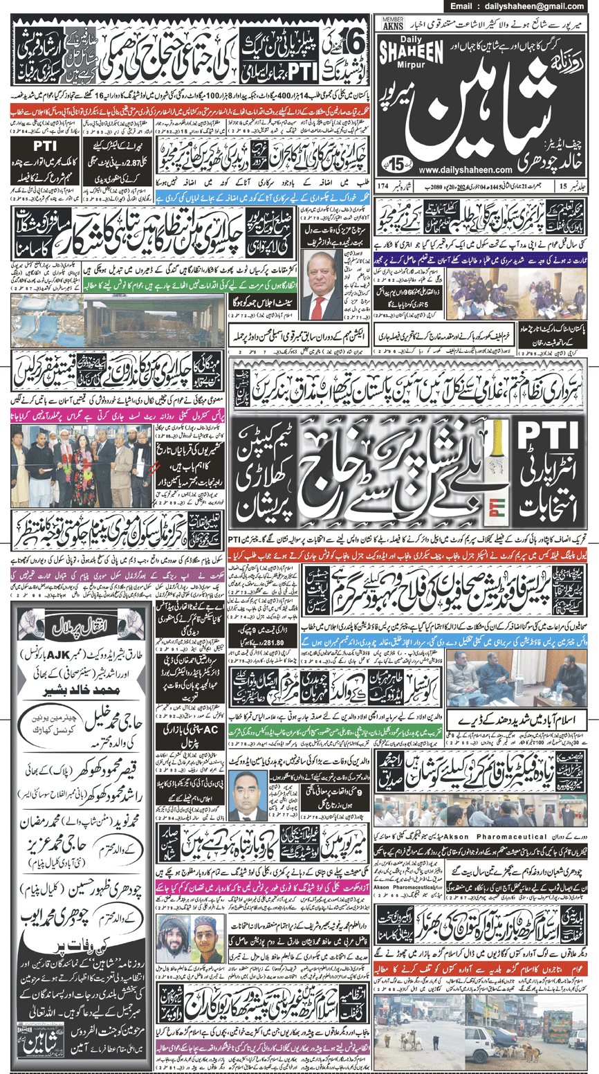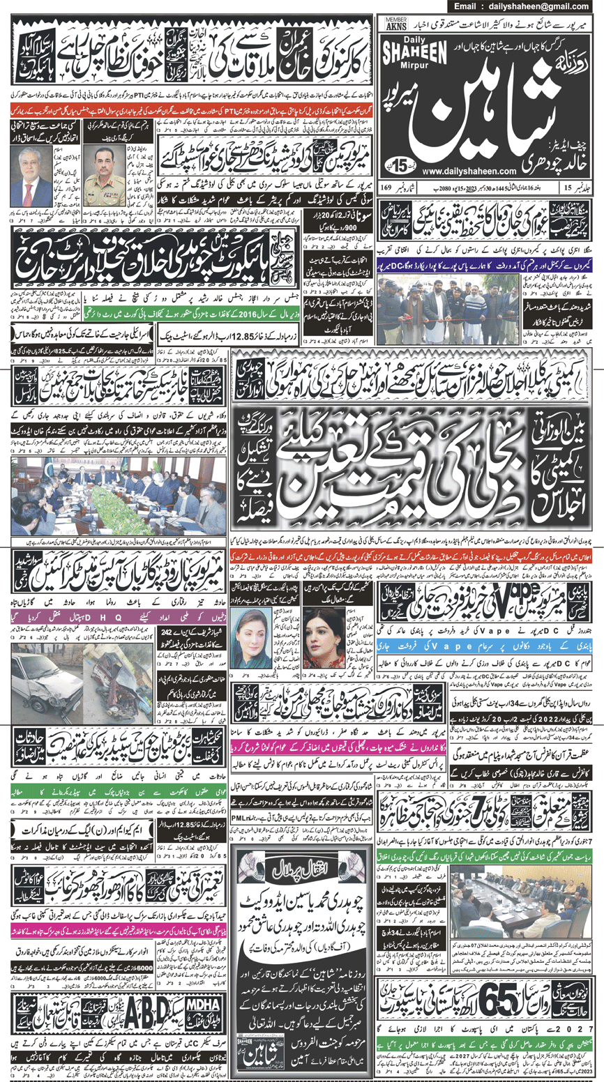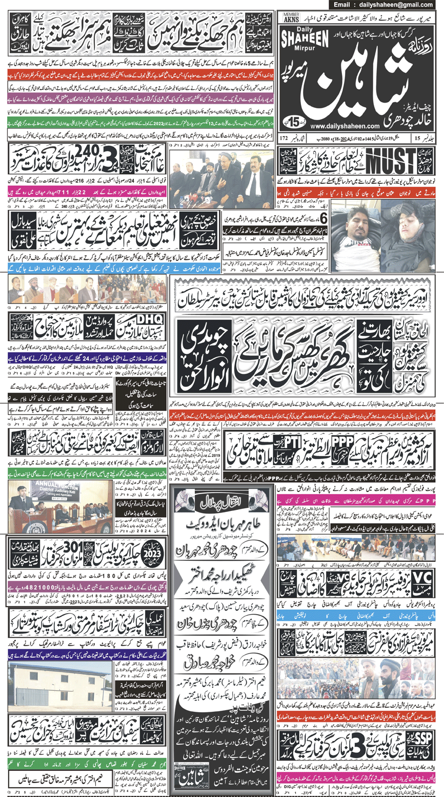 Daily Shaheen Mirpur – Latest news from Mirpur & Azad Kashmir | Mirpur News, Mirpur Newspaper