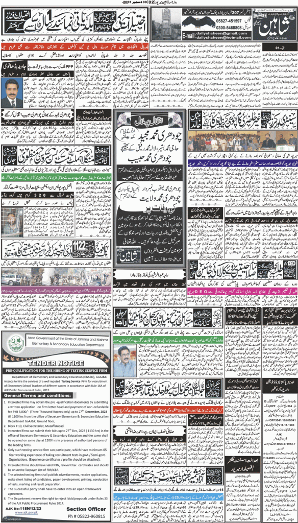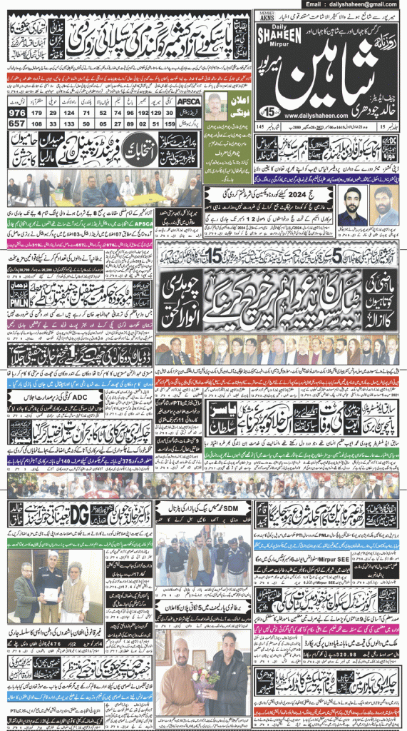 Daily Shaheen Mirpur – Latest news from Mirpur & Azad Kashmir | Mirpur News, Mirpur Newspaper