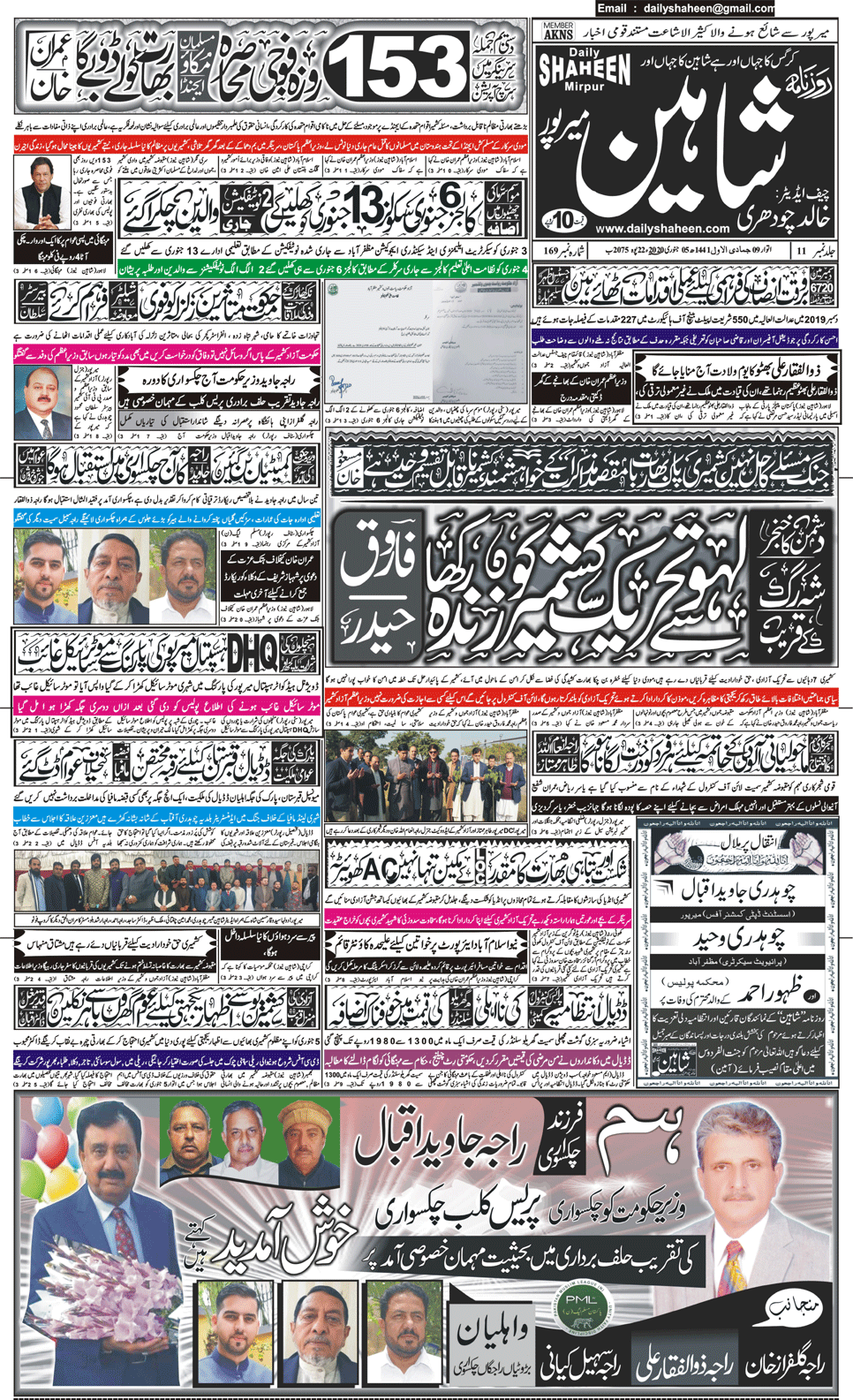 Daily Shaheen Mirpur – Latest news from Mirpur & Azad Kashmir | Mirpur News, Mirpur Newspaper